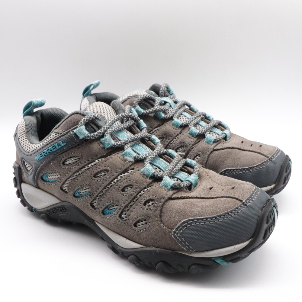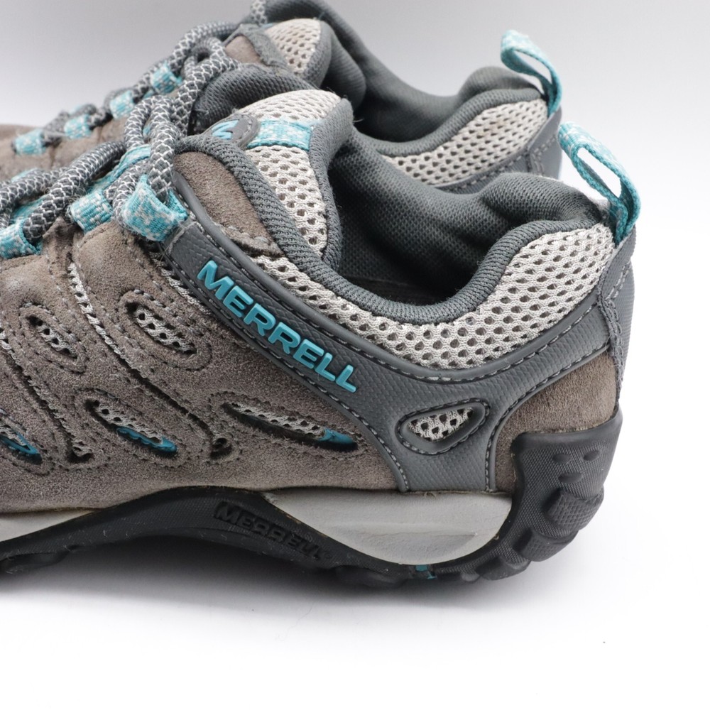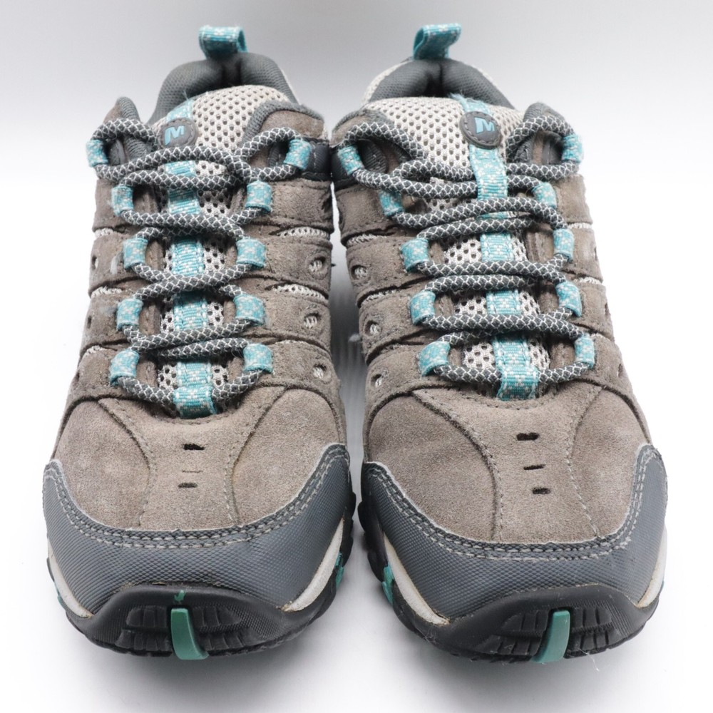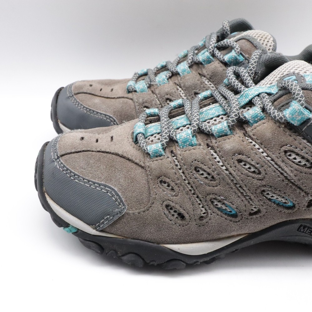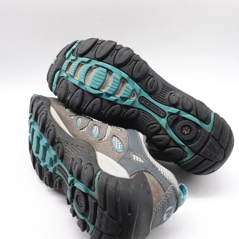 These Merrell Women's Hiking Shoes in size 5.5 feature a lace-up closure and are designed for outdoor activities like hiking. The shoes come in a grey-blue color with synthetic fabric construction, a rubber outsole, and a breathable lining for comfort. With a standard shoe width and foam insole, these athletic shoes are suitable for various seasons and offer colorful, sports-themed accents. Made by the brand Merrell, these shoes are a practical and stylish choice for women who enjoy outdoor adventures.