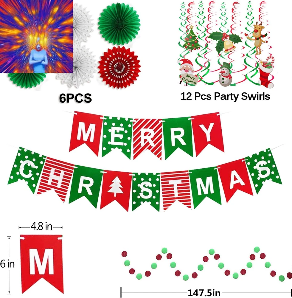 Store New Arrivals Add to Favorite View Feedback Contact Merry Christmas Banner Paper Fan Flower Circle Confetti Dots Hanging Garlandand Swirl Streamers Christmas Tree Christmas Snowman God Tang for Christmas Party Decoration Description Item Weight 7.4 ounces Item model number 43234-761 Is Discontinued By Manufacturer No Package Dimensions 6.7 x 5.79 x 1.18 inches Material:Eco-friendly paper red green white fish tail MERRY CHRISTMAS banner and paper Circle Confetti Dots Hanging Garland swirl streamers garland banner and Paper fan flower. high quality products,you can reuse it ! Packaging set : 6pcs Paper Fan flower;12pcs paper swirls;1 pcs MERRY CHRISTMAS banner.1pcs Circle Confetti Dots Hanging Garland. A big set perfect for your Merry Christmas party decoration. Product Size:Each paper fan flower dia is more than 6"; paper swirls is 31"; Circle Confetti Dots Hanging Garland 147.5". they are so easy to hang,perfect for your Merry Christmas party decoration. Color: red green white. design element is Christmas tree Christmas snowman God Tang,etc...Very cool and Perfect for adding to your Merry Christmas party atmosphere.You can take a lot of beautiful pictures with these cute and warm banners decorations. The cute Christmas tree Christmas snowman God Tang Banner Garland paper fan flower Swirl Streamers perfect for your Christmas/Baby Shower/ kids birthday,Christmas etc...Party Decorations.High quality Brand items from FECEDY! Material:Eco-friendly paper red green white fish tail MERRY CHRISTMAS banner and paper Circle Confetti Dots Hanging Garland swirl streamers garland banner and Paper fan flower. high quality products,you can reuse it ! Packaging set : 6pcs Paper Fan flower;12pcs paper swirls;1 pcs MERRY CHRISTMAS banner.1pcs Circle Confetti Dots Hanging Garland. A big set perfect for your Merry Christmas party decoration. Product Size:Each paper fan flower dia is more than 6"; paper swirls is 31"; Circle Confetti Dots Hanging Garland 147.5". they are so easy to hang,perfect for your Merry Christmas party decoration. Color: red green white. design element is Christmas tree Christmas snowman God Tang,etc...Very cool and Perfect for adding to your Merry Christmas party atmosphere.You can take a lot of beautiful pictures with these cute and warm banners decorations. The cute Christmas tree Christmas snowman God Tang Banner Garland paper fan flower Swirl Streamers perfect for your Christmas/Baby Shower/ kids birthday,Christmas etc...Party Decorations.High quality Brand items from FECEDY! ABOUT US We offer the best prices around on high quality products. Our E-store includes media such as books, movies, music and games while offering electronics, toys, sporting apparel, clothing, tools, general home, garden items and more. SHIPPING We are always working hard to ensure your package arrives as soon as possible. Please understand that some factors like weather, high postal traffic, and the performance of shipping companies are outside of our control. We offer free shipping to the lower 48 states and ship within 2 business days of payment, usually sooner. We do not accept P.O. Boxes. Please provide a physical address. For shipping outside of the continental USA, we only use eBay's Global Shipping Program.The item is shipped to KY and then sent to the rest of the world. International customers are responsible for all duties and taxes. Continue to check out in order to calculate costs for shipping the item to your country. Messages regarding eBay's Global Shipping Program MUST be directed at eBay EXCLUSIVELY. RETURNS We offer a 30-Day Return Policy on items which you are not completely satisfied with. You have the option for a full-refund or an exchange of the item. No returns are available on items shipped outside of the USA. PAYMENT We accept PayPal. CONTACT US This page content is yet to come Please ad us to your favorite seller and visit again later Thank You CUSTOMER SATISFACTION We try our very best to make sure every customer is completely satisfied. If there's a problem, message us! We're happy to help. WE ACCEPT