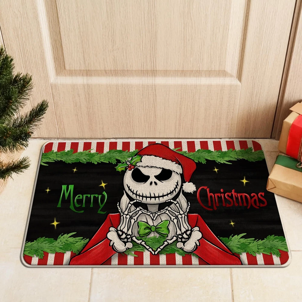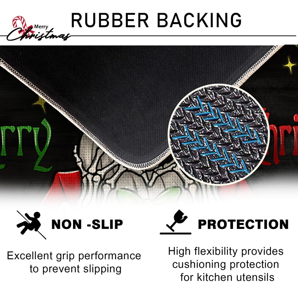 Attractive Unique Design: The Christmas non-skid doormat top was printed with Jack , skull, red and white stripes, Xmas tree, Santa hat, antler patterns. Not only is it a beautiful and creative way to decorate your home, but it also brings you a deeply cheerful festive atmosphere Comfort Standing Kitchen Mat: This cushioned switch mat features non-slip recycled rubber on the back and low-profile linen felt on the top to reduce chances of tripping. Besides, the low-profile rug has a high-quality durable construction that effectively resists stains 2-Piece Kitchen Rug: There is a door rug and a long kitchen runner rug in the package, which measures 17" x 29" and 17" x 47". short and long make these padded mats (alfombra para cocina) be the perfect size for kitchen Perfect For Home Decor: The seasonal floor rugs are perfect for indoor kitchen, sink floor, living room, bathroom, office, laundry, foyer, entryway, doorway, outdoor, porch, deck, patio entrances, , balcony, restaurant kitchen, holiday decor. Just place it anywhere you want. Add pop colors to decor your home and protect your floors, too Easy To Clean: Cleaning of kitchen carpets is quick and easy, just spray with a hose or use a sponge and mild detergent to remove dirt. Do not bleach or dry clean, do not wring and let it air dry. Our washable kitchen rugs are rigorously tested to ensure they last for a long time and retain their shape after washing