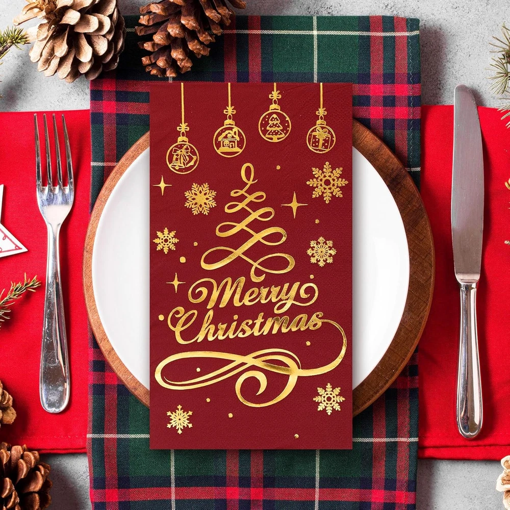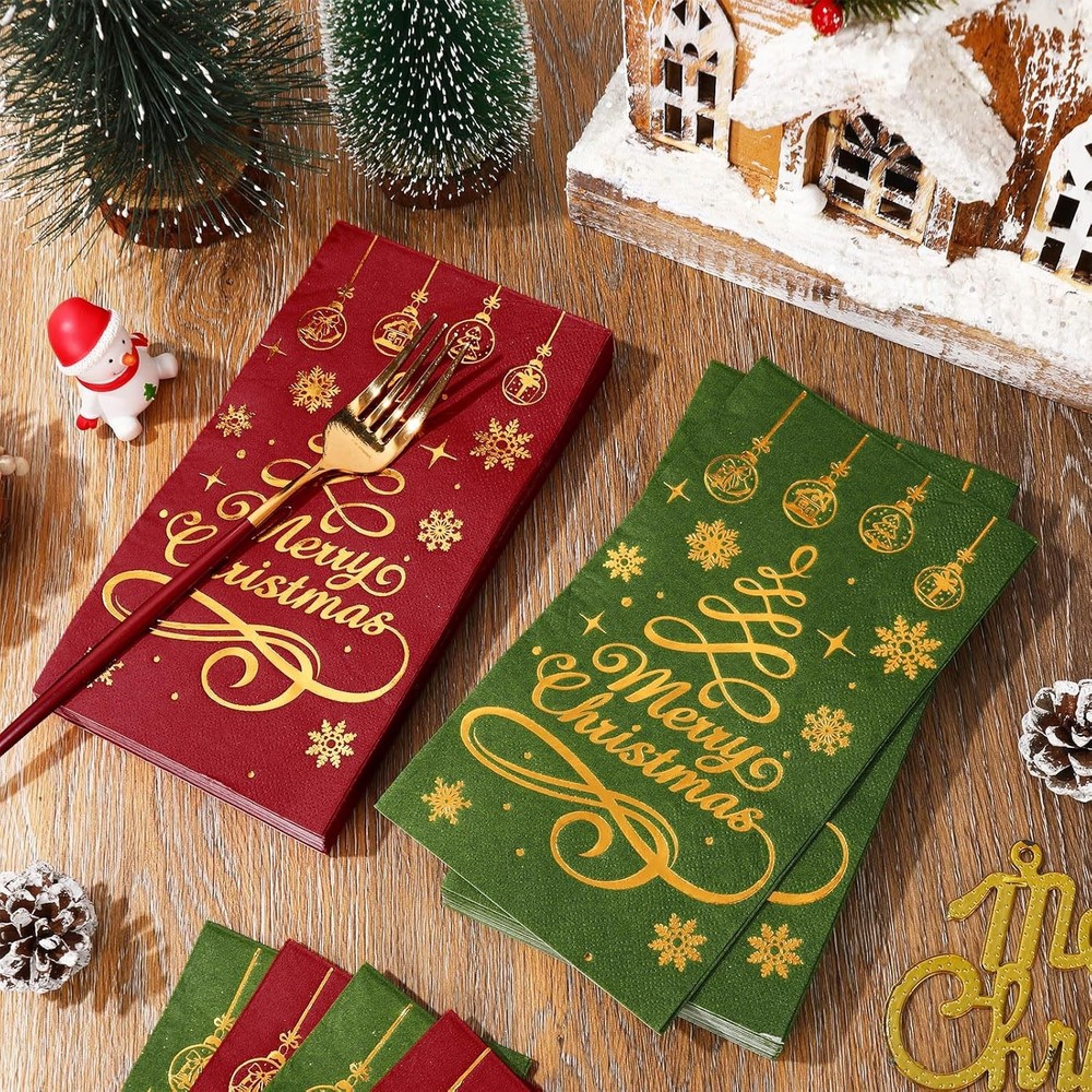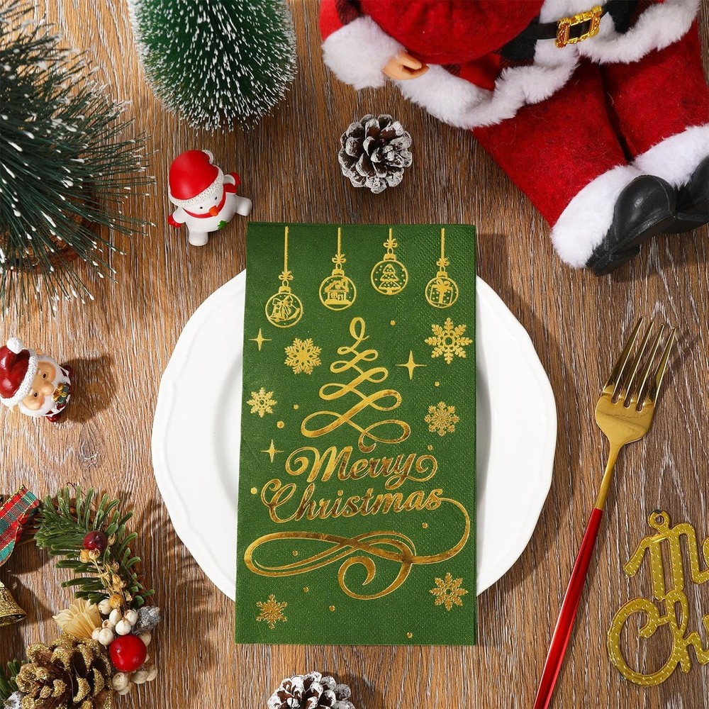 Merry Christmas Guest Paper Napkin Red Green Gold Foil 3 Ply Disposable Napkin Xmas Tree Dinner Hand Napkin Towel for Winter Party Supplies Table Decor, 80Pcs Merry Christmas Guest Paper Napkin Red Green Gold Foil 3 Ply Disposable Napkin Xmas Tree Dinner Hand Napkin Towel for Winter Party Supplies Table Decor, 80Pcs FREE AND FAST SHIPPING! About this item Package Details - Totally 80pcs Christmas theme guest napkins in 2 colors, each color 40pcs, the quantity is quite sufficient for you to use. Gold Foil Design - Colored in red and green, printed with gold foil Christmas elements like Christmas tree, Christmas ball, snowflake and more, our guest paper napkins are festive and elegant, can well match Christmas and winter holiday. Good Quality - Our guest napkins are made of 3 ply-thick paper, soft and absorbent that dry your hands quickly. The napkin measures 4.3 x 7.9inch when folded and 13 x 15.8inch when unfolded, proper to use. Facilitate Your Cleaning - With good water absorption properties, Christmas disposable napkins are perfect to make cleaning easier for you. Can be served for bathrooms, kitchens, powder rooms, toilets, living rooms, bars, restaurants, etc. Multiple Usages - Perfect table arrangements for winter, Christmas, New Year, princess parties, birthday parties and wonderland themed parties, etc., these delicate paper napkins will be a big hit at parties. Product We offer a 30-Day Return Policy on items which you are not completely satisfied with. You have the option for a full-refund or an exchange of the item. No returns are available on items shipped outside of the US . Shipping We offer Free Shipping to the US and ship within 2 business days of payment, usually sooner. We use UPS express shipping. That's why your products are usually delivered within 3 days . Contact We try our very best to make sure every customer is completely satisfied. If there's a problem , message us! We're happy to help. 24/7 live chat available.