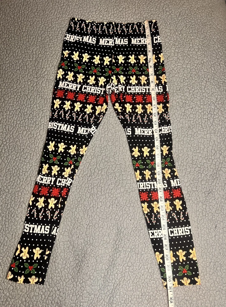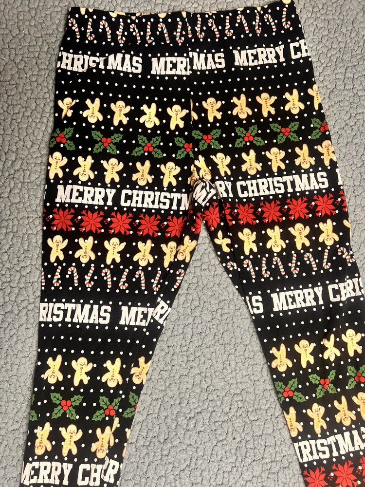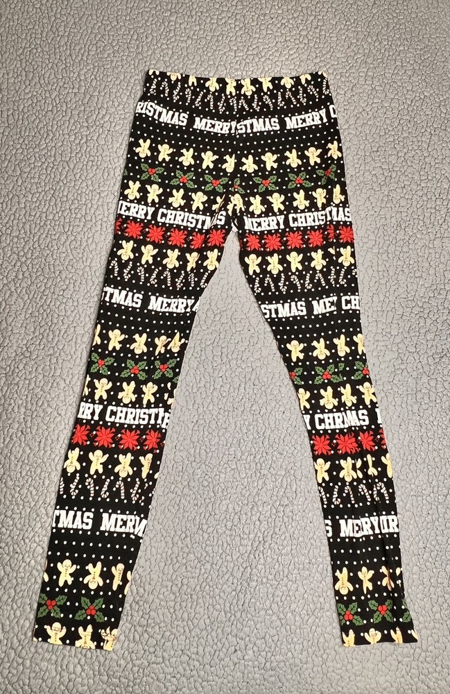 Holiday Time Merry Christmas Leggings Little Girls Size Large Black good condition measurements are in photos SKU(A214)