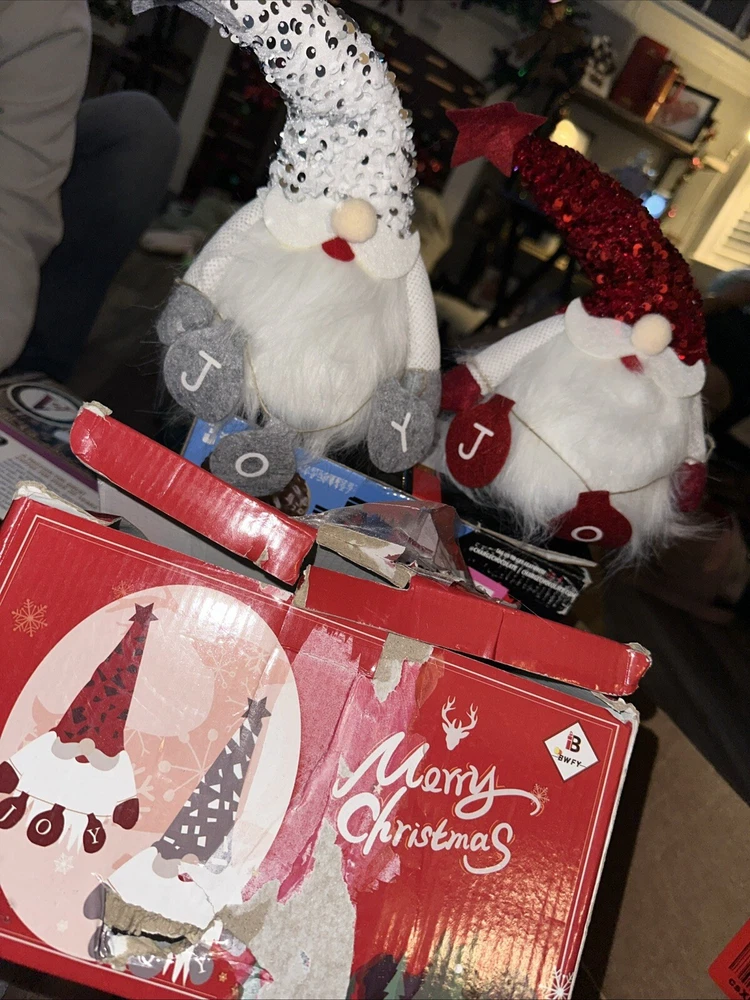 Sold as is, see photos for condition! Got these gnomes and I’m not into them. The Y is missing from the red gnome but I figured a crafty person could spruce it back up and improve it! The speakers and wheels in the bottom of these gnomes makes me feel like they’re supposed to make noise and move around! Open to offers! Bring home the holiday spirit with this delightful figurine of a joyful gnome. Perfect for Christmas decorating, this figurine is sure to bring a smile to your face and to your guests. Crafted with care, this piece is a must-have for collectors of holiday decor. Featuring a cute and festive design, this JOY Gnomes figurine is ideal for adding a touch of whimsy to your Christmas decorations. Made with high-quality materials, this piece is durable and will last for years to come. Whether you're looking for a special ornament for your tree or simply want to add some holiday cheer to your home, this figurine is sure to delight.