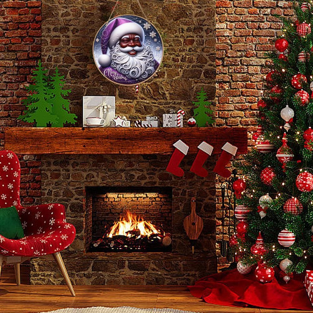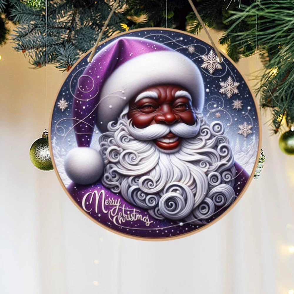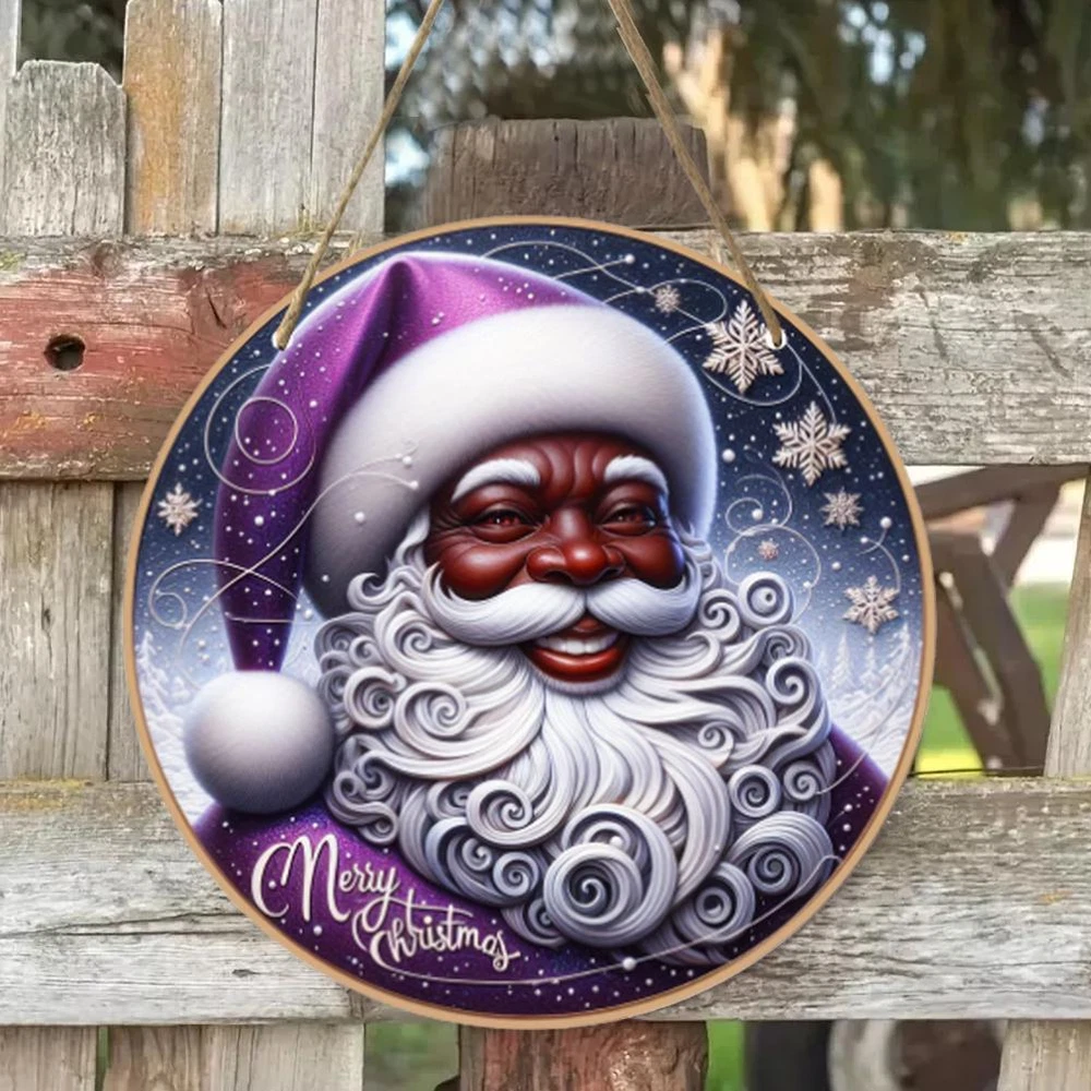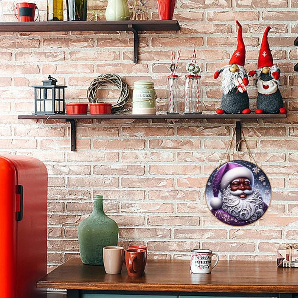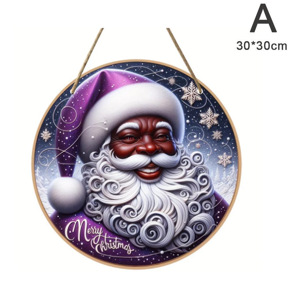 Merry Christmas Santa Claus wooden round sign creative decoration sign GX