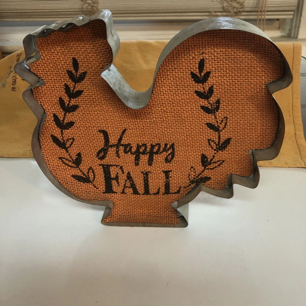 Mesa de hojalata Happy Fall Gallo - Manto Decoración Cosecha Acción de Gracias Rústica