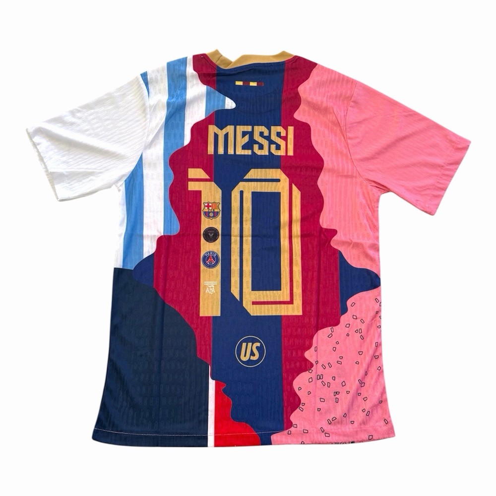 The Messi Tribute Jersey is a special fan apparel item dedicated to soccer legend Lionel Messi. This jersey, representing both the sport of soccer and international clubs, is a must-have for fans of Messi and showcases their support for their favorite player. With its unique design and high-quality materials, this jersey is sure to be a prized possession for any soccer enthusiast.