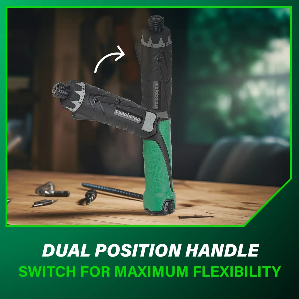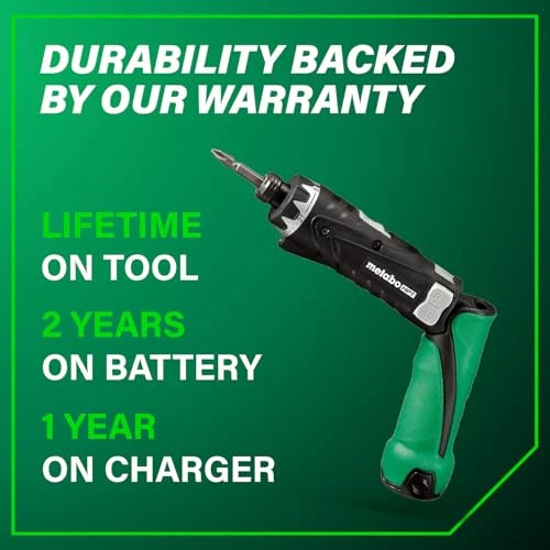 INTRODUCING THE ULTIMATE ELECTRIC SCREWDRIVER SET FOR PROFESSIONALS AND DIY ENTHUSIASTS. Metabo HPT's electric screwdriver is perfect for renovation and repair work. It is designed to achieve precision work at speed with optimal control. This is the ideal power tool for anyone looking for a compact, portable screwdriver which gives you the power and control to get the job done efficiently. THIS PRECISION SCREWDRIVER SET IS DESIGNED WITH ERGONOMICS AND VERSATILITY IN MIND. This screwdriver includes an ergonomic soft grip with an adjustable handle that allows you to operate the screwdriver in 2 positions: in-line or pistol grip mode, for maximum flexibility in your operations. Easily screw in or screw out just by switching the forward/reverse button. If you are working in dark spaces, the built-in LED light allows you to illuminate your work area and provide clear visibility. This cordless screwdriver includes 21 clutch settings + 1 drill setting, allowing precision and control in operation. With its ergonomic design and reliable performance, this screwdriver set is a must-have for any craftsman or home improvement enthusiast. COMPLETE CORDLESS SCREWDRIVER SET This electric screwdriver kit includes all you need to operate the cordless screwdriver: (1) Two lithium-ion batteries easily switchable so you can always use the screwdriver while the other battery is charging. (2) One quick charger (3) One Phillips bit (4) One durable hard case. GO FOR METABO HPT PROFESSIONAL-GRADE POWER TOOLS Metabo HPT offers an extensive line of professional-grade power tools and accessories for woodworking, metalworking, drilling and fastening, concrete drilling and cutting, as well as a complete line of pneumatic nailers, staplers, compressors, and collated fasteners. DUAL POSITION CORDLESS SCREWDRIVER: Metabo HPT's electric screwdriver set is practical and easy to handle. Our precision screwdriver includes an adjustable handle allowing for operation in either in-line or pistol grip position for maximum flexibility in your operations. EASY SCREW-IN AND SCREW-OUT FUNCTIONS: The Metabo HPT cordless screwdriver set includes an easy to use forward/reverse switch to change bit direction. This is a versatile electric screwdriver set for professionals or DIY enthusiasts. PRECISION SCREWDRIVER SET FOR DIY WORK: The Metabo HPT electric screwdriver set offers 21 clutch settings + 1 drill setting for precision and control. In addition, this small screwdriver set has a built-in led light for safe and accurate work in dark environments. POWERFUL DURABLE TORQUE SCREWDRIVER: This high-power electric screwdriver offers two speeds (260/780 rpm). It is equipped with 2 rechargeable batteries, so you can always use the power tool while the other is charging. PORTABLE SMALL SCREWDRIVER SET: Our cordless screwdriver set contains: (1) Cordless screwdriver with a compact design at 10.55 in length and 1lb in weight, (2) 3.6V Lithium-ion batteries , (1) Hard case, (1) Quick charger, (1) Phillips bit. GO FOR THE METABO HPT EXPERIENCE: This precision screwdriver set comes with a lifetime warranty on the tool body and a 2 year battery warranty. Choose our durable Japanese-engineered power tools; choose the powerful partner of professionals and DIY enthusiasts for over 70 years.