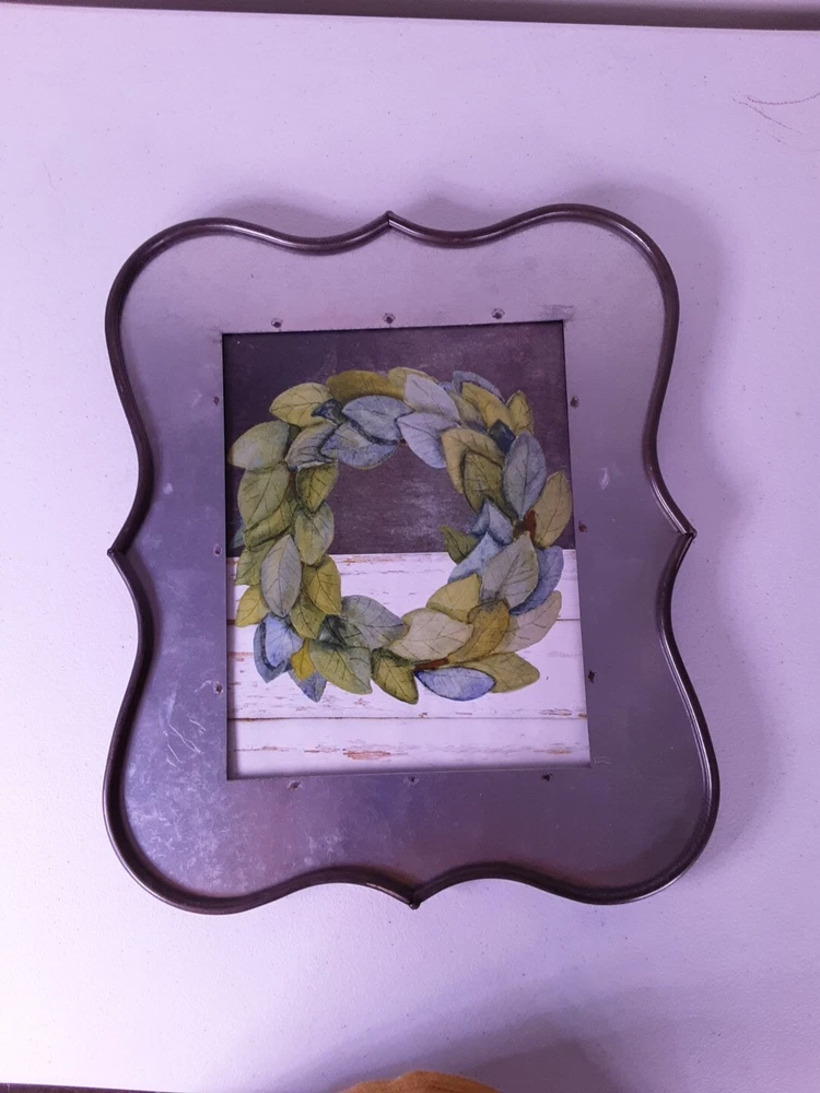 This metal picture frame is perfect for displaying your favorite 8 x 10 photos. The decorative edging and rustic/primitive style make it a great addition to any home decor. The frame is suitable for all occasions and can hold one photo, which can be loaded rearwards. It has a rectangular shape and measures approximately 12 x 17 inches (A3). The picture frame is made of gray matte finish metal and has a box frame depth of 0.5 inches. It is designed for portrait orientation and can be hung on the wall. The frame is produced in China by Hobby Lobby. Get this photo frame to showcase your memorable moments.