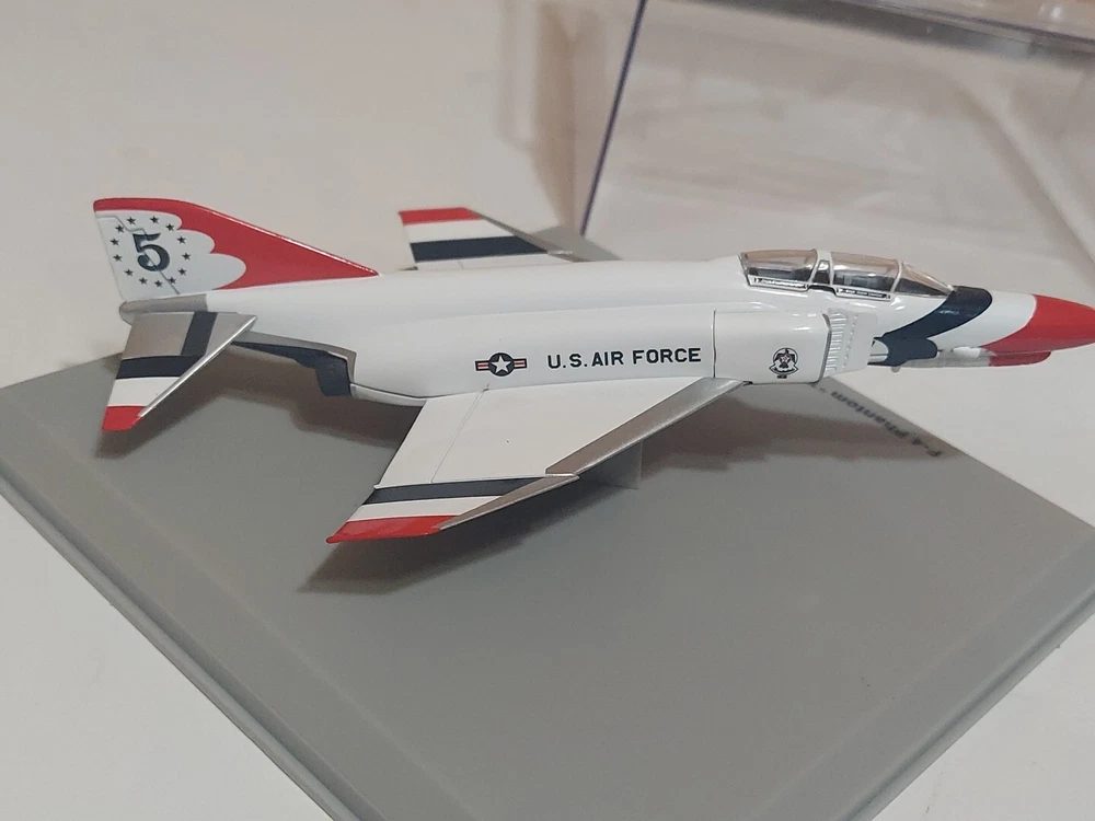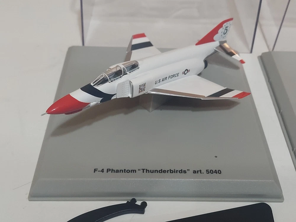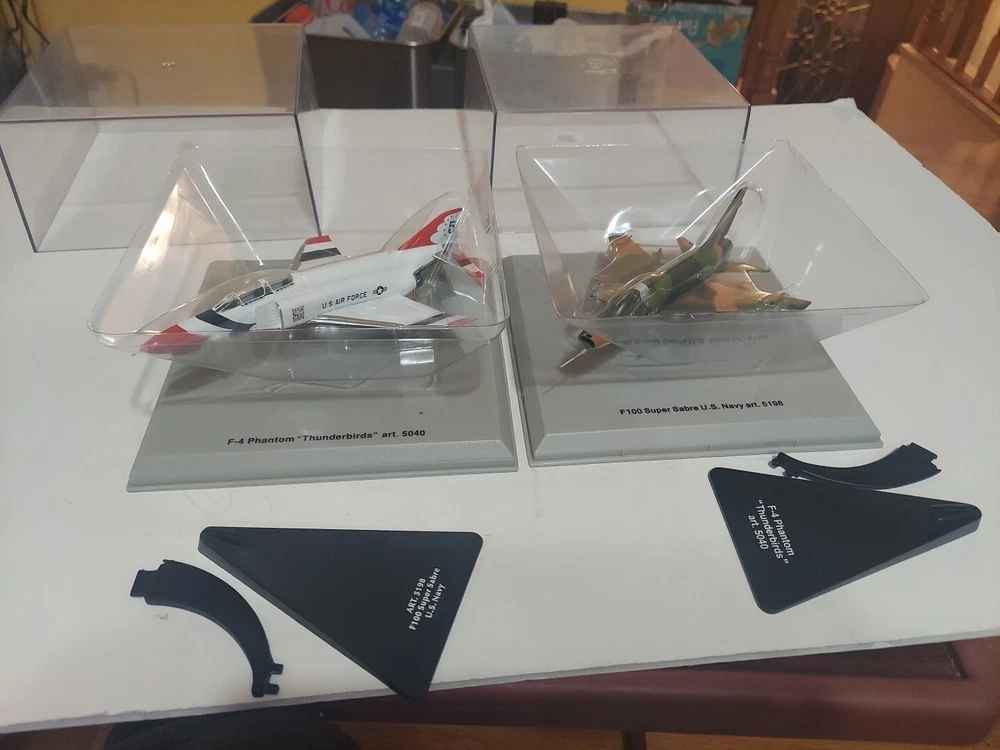 Up for bid are the 2 Metal Armour 1:100 scale planes seen in the photos. 1. F100 Super Saber U.S. Navy No. 5198 2. F-4 Phantom "Thunderbirds" No. 5040 Both have never been displayed outside of the case. The planes are in great condition. The plastic outer cases do have some scratches and surface wear. Both have the stands. Nice for collectors to display. Questions, please ask. Thanks!