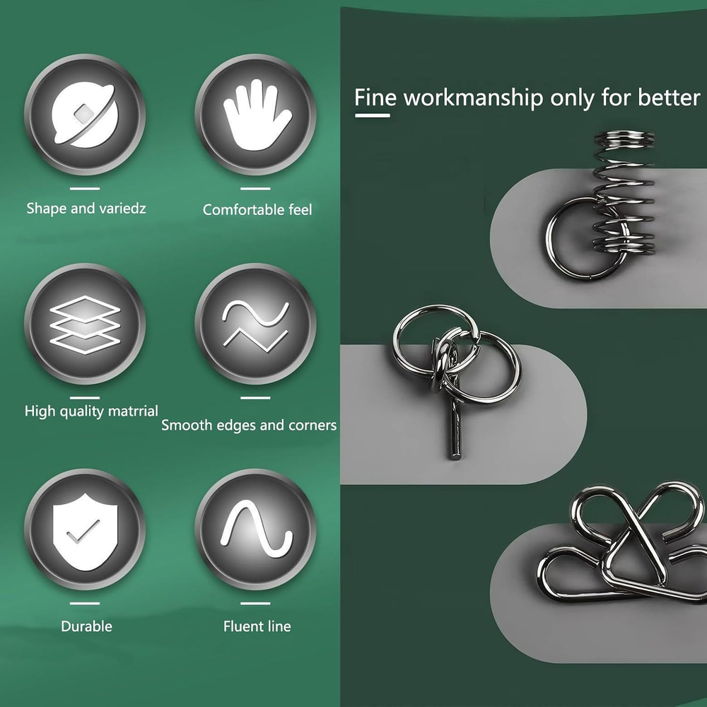 Gift Option: A great gift idea for stocking stuffers, party favors, or as a fun present for puzzle enthusiasts. Different Styles: there are 32 pieces of assembly and disentanglement metal puzzles in 32 styles, diverse styles offer you much fun and challenges, also equipped with a organizer bag and instructions for you, ideal for for adults or teens whose hands are often fidgeting Enjoy Fun Together: owing to large capacity, metal puzzles brain teasers are suitable for playing with friends or family members; We also provide you with a storage bag for storing puzzles to avoid them missing; You can use these puzzles to loiter time, relax and keep away from electronics, practicing mindfulness and improving focus Pocket Size: adult mind teasers are small and light, which can be easily taken to car, school, home or office, convenient to exercise your hands on ability, creative thinking and logical thinking where you want, suitable for people of different ages to release the stress Metal puzzle brain teaser condenses with traditional Chinese culture and they are quite interesting to creative thinking and improve both your IQ and EQ. Challenge Puzzle Toys: the metal puzzles bulk have 32 models interlocking puzzle toy of different difficulty, provide challenges for those who like challenges, this is an interesting toy that is good for killing time and diverting the attention from spending time on the screen, they are a fabulous holiday gift
