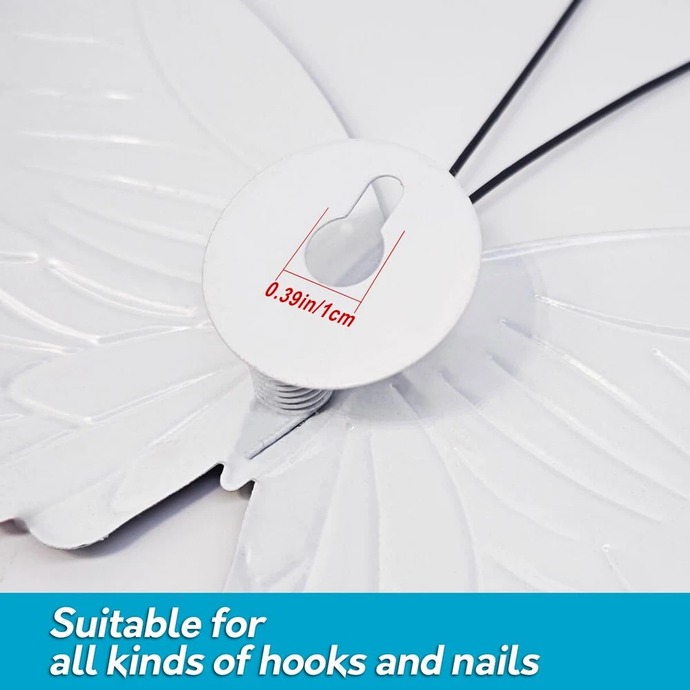 PACKAGE INCLUDE - Set of 5 PCS lifelike metal butterflies with realistic patterns and bright colors that will give you more energy no matter where you decorate. RUST-PROOF - Made of high-quality iron, It is treated with anti-rust technology to make the metal butterfly more durable and keep the color uneasy lost. Make the metal butterfly keeps its beautiful appearance under the sunlight and raining day. EASY TO HANG - There is a keyhole on the back of the butterfly, which can be hung directly on the nail/hook, you can easily hang them on the tree, fence, door or wherever you want. REALISTIC 3D EFFECT - you can fold the wings of the butterfly to stand up, so that the butterfly looks more realistic, and the spring hook design can make the butterfly dance in the wind, It looks more real. WIDELY USED - a great idea for indoor and outdoor decorating, these realistic metal butterflies can be perfect for decorating backyards, fences, gardens, walls, trees, bedrooms, living rooms, TV background walls, walkways, doors or entrances. When you order 3D metal butterfly wall decor today, you have 60 days of protection and no problem money back . There is no risk at all, why not try it?