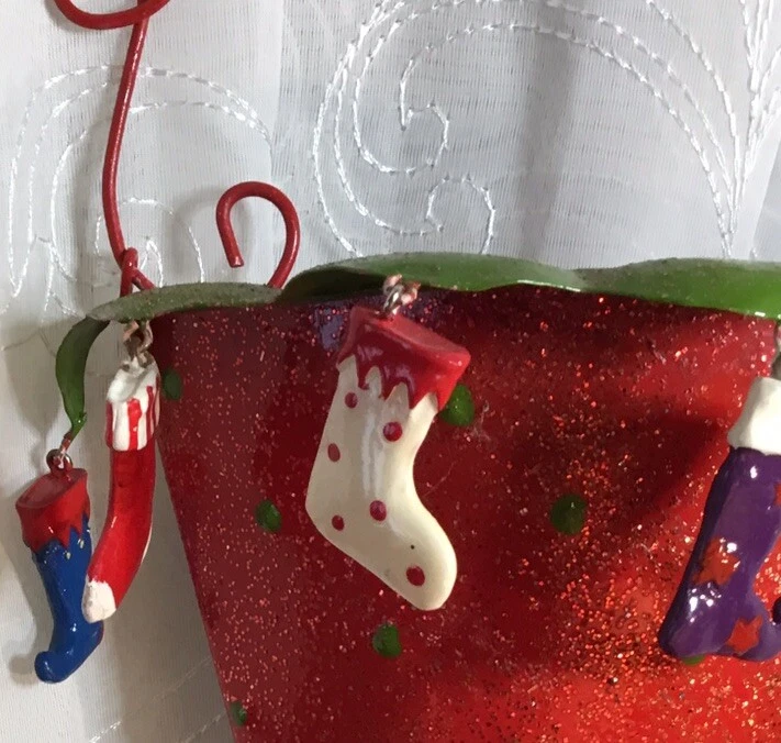 Metal Christmas Handled Wall Hanging Decor Stockings Socks Glitter