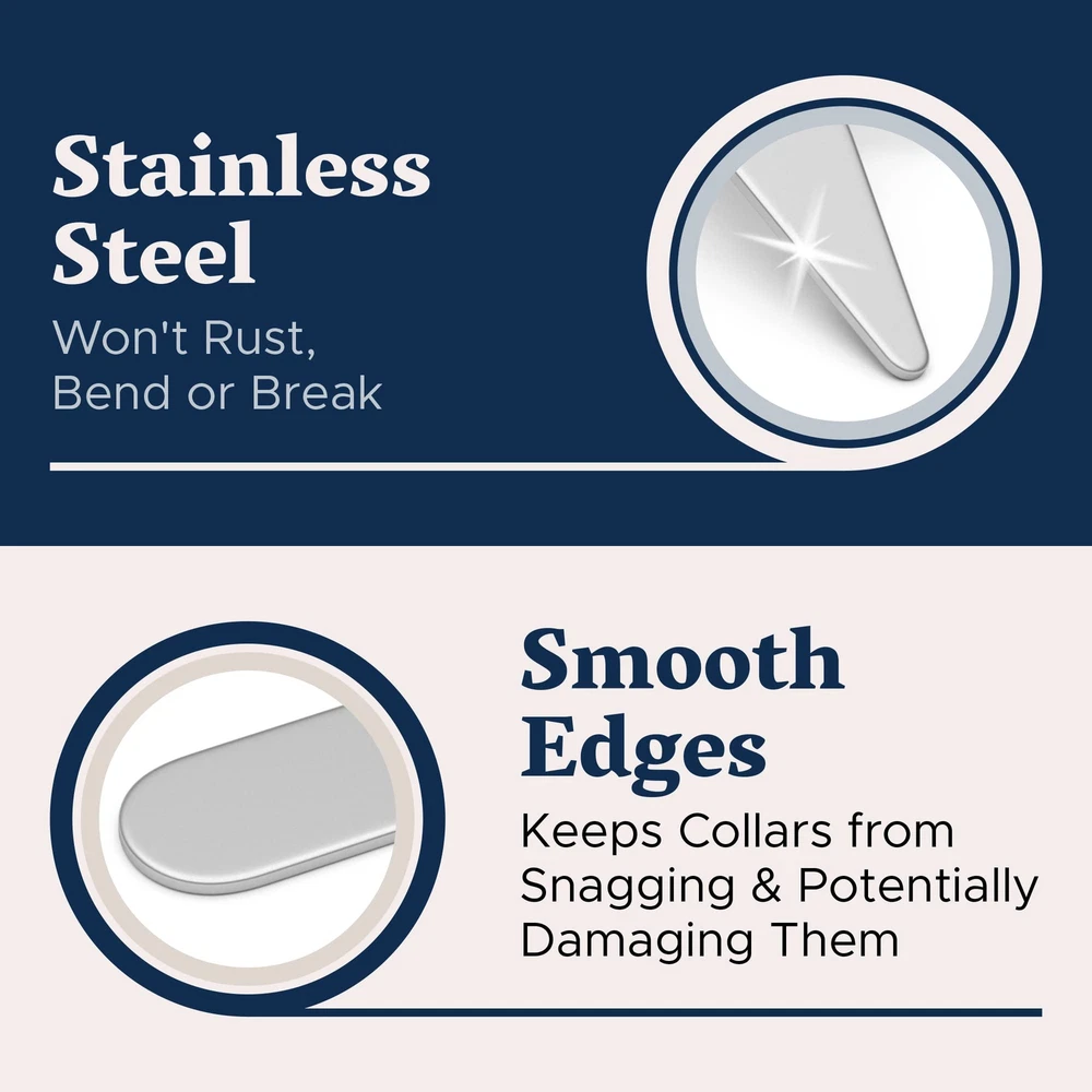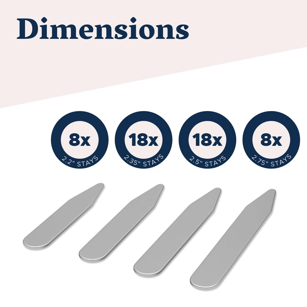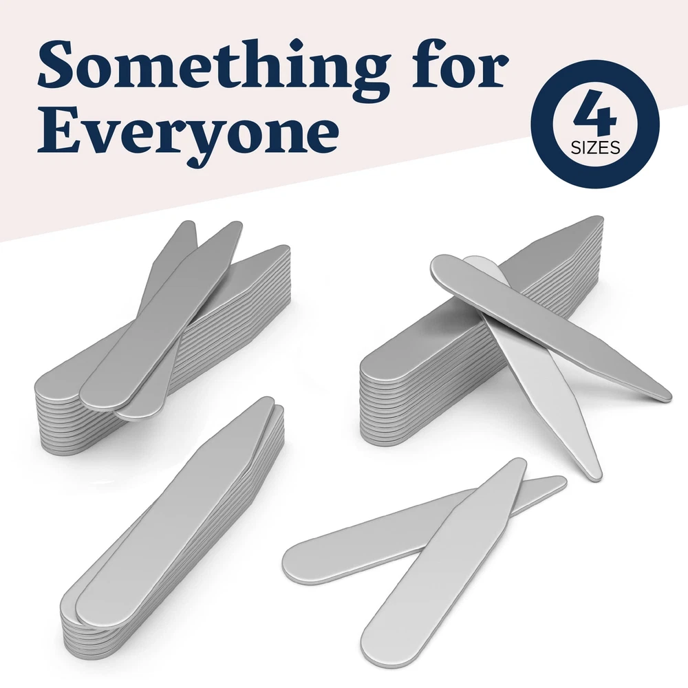 Metal Collar Stays for Men – Premium 52-Piece Set in 4 Sizes for Crisp Dress Sh Features: Durable metal collar stays keep your dress shirts looking sharp all day Stainless steel construction resists rust and bending for long-lasting use; these stays are designed to last you a long time Includes 52 collar stays in four sizes for a perfect fit with almost any shirt collar (2.2", 2.35", 2.5" and 2.75") Polished edges prevent damage to your shirt collars for added longevity Comes with a divided storage case to keep collar stays organized and accessible Features: Durable metal collar stays keep your dress shirts looking sharp all day Stainless steel construction resists rust and bending for long-lasting use; these stays are designed to last you a long time Includes 52 collar stays in four sizes for a perfect fit with almost any shirt collar (2.2", 2.35", 2.5" and 2.75") Polished edges prevent damage to your shirt collars for added longevity Comes with a divided storage case to keep collar stays organized and accessible eBay integration by
