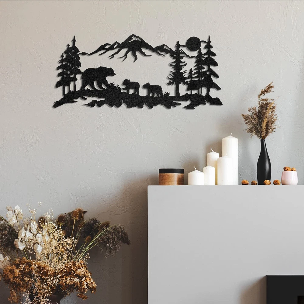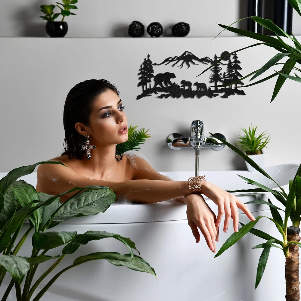 Features: Wide applications: The monogram metal sign can be extensively applied for indoors and outdoors, such as home, restaurant, hotel, living room, yard, garden, balcony or other places, also you can adorn it on the wall, door, shelf, window and more. More usages are waiting for you to explore. Classic style: The hanging outdoor metal sign featured with black, classic and simple, easy for you to well match with other home decorations, even can keep consistent with your room style, the first choice for you to renovate your house, bringing you a refresh feeling. Specifications: Material: metal Color: black Size: about 30 x 17.5 cm/ 11.8 x 6.9 inches Package includes: 1 x Metal wall decor Notes: Manual measurement, please allow slight errors on size. The color may exist slight difference due to different screen displays. The nail is not included in the package, please kindly note. Exquisite design: our metal sign for outdoors is designed around animals in the forest, like bear, and adding forest, pine tree, mountains and more, vivid and lifelike, black metal sign gives people classic and elegant feeling Suitable size: the primitive bathroom wall art measures approx. 30 x 17.5 cm/ 11.8 x 6.9 inches, proper size for you to nicely decorate your living room, bedroom, study room, making your home look more charming, and showing your artistic taste to your guests Quality and lasting: the metal sign is made of wearable metal material, fine workmanship and painting make it keep glossy for a long time, not easy to rust or fade over time, please get assured to use in daily life How to install: there are 2 holes on the surface of the forest wall decor, you can directly hang it on the wall with nails (not included), or decorate it in other places that you want, not easy to fall or swing, because it can fit tightly to the wall and does not bulge Nice gift: the bear metal sign decor is very cute and meaningful, very suitable for you to send your friends, newlywed, families, neighbors or colleagues as a birthday gift or housewarming gift; They will be happy to receive such a chic gift