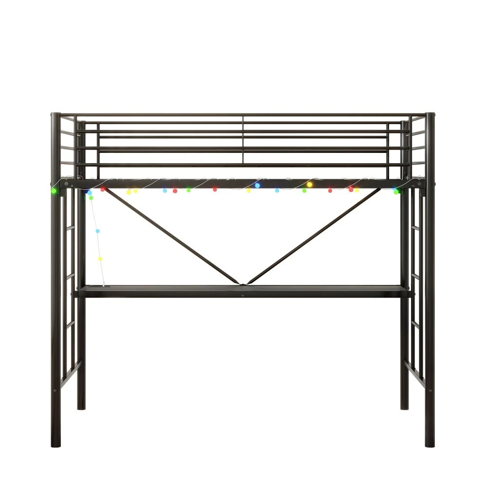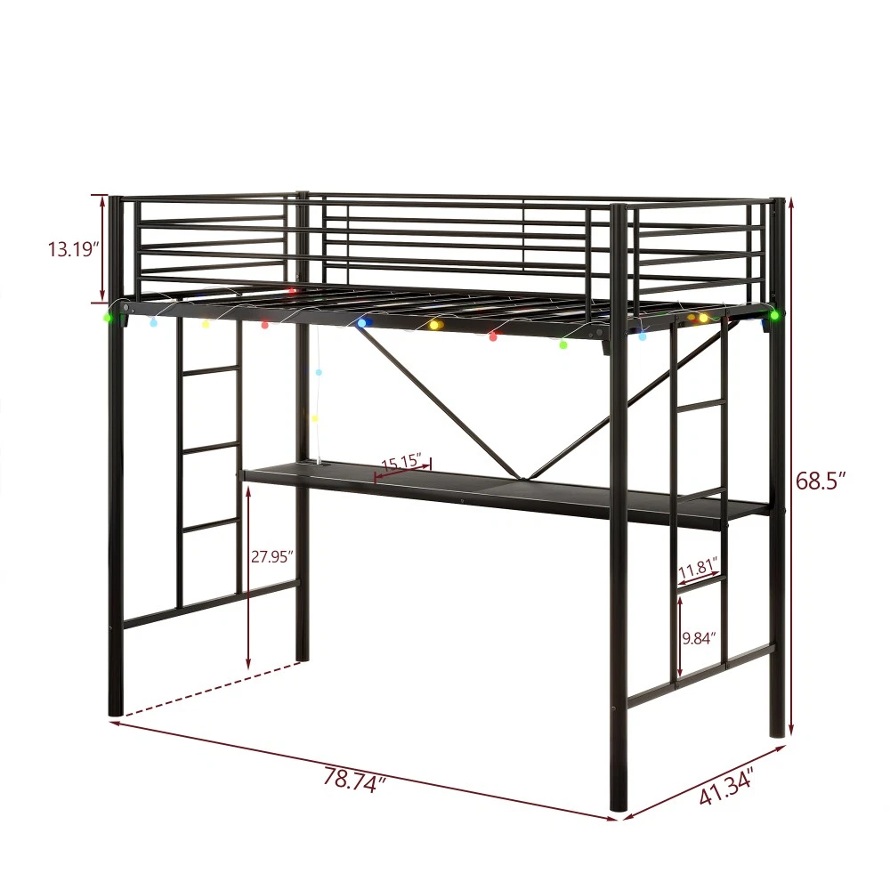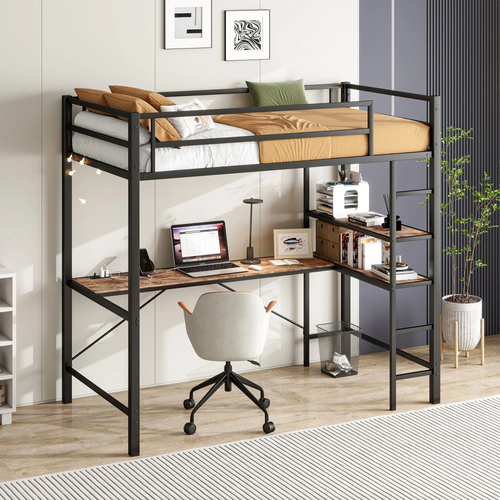 🏠Twin Loft Bed Collection - Space-Saving Solutions for Bedrooms! Discover our versatile line of twin-size loft beds—designed for safety, durability, and maximum space efficiency. Perfect for teens, college students, or small bedrooms, each model combines sturdy construction with functional features to elevate your living space. Choose from basic, desk-equipped, or L-shaped desk + shelf designs to fit your needs. 🖤 Option 1: Metal Twin Loft Bed (Black) - Basic & Sturdy Key Specifications Dimension Type Details Assembled Size 77.95"L x 41.26"W x 50.00"H Product Weight 68.00 lbs Package Dimensions 76.97"L x 16.14"W x 7.68"H Package Weight 68.96 lbs Material Heavy-Duty Metal Weight Capacity Upper Bed: 250 lbs Mattress Requirement Fits Standard Twin Mattress (Not Included) Box Spring Not Required ✨ Standout Features ✅ Ultra-Sturdy Metal Frame : Crafted with heavy-duty metal and 13 secured slats, this loft bed offers exceptional stability and durability—built to withstand daily use for years.✅ Maximum Safety Design : Full-length guardrails on all four sides prevent falls, while the sturdy angled ladder ensures safe, easy climbing up and down.✅ Space-Saving Low Profile : 50” height creates ample under-bed clearance for storage boxes, seating, or a small workspace—ideal for compact bedrooms.✅ Hassle-Free Assembly : All tools, labeled parts, and clear step-by-step instructions included. Assembly takes ~60 minutes (2 people recommended for efficiency). 🖤 Option 2: Twin Metal Loft Bed with Desk, Power Outlet & LED Lights (Black) Key Specifications Dimension Type Details Assembled Size 78.74"L x 41.34"W x 68.50"H Product Weight 84.00 lbs Package Dimensions 78.14"L x 16.53"W x 7.48"H Package Weight 87.97 lbs Material MDF + Heavy-Duty Metal Weight Capacity Upper Bed: 400 lbs Desk: 150 lbs Desk Width 15.15" Under-Bed Clearance 55.1" Guardrail Height 13.19" ✨ Standout Features ✅ All-in-One Work & Sleep Space : Built-in desk transforms the under-bed area into a workstation or reading nook—perfect for students or remote workers.✅ Built-in Power Station : Desk features 2 AC outlets + 2 USB ports for easy charging of laptops, phones, or tablets—no more searching for wall sockets.✅ Customizable LED Lighting : DIY color modes and easy controls create a warm, personalized bedroom atmosphere—great for studying or relaxing.✅ Dual Staircases : Left and right ladders offer flexible placement—fit the bed in any corner of your room without sacrificing accessibility.✅ Superior Safety : Round tube metal frame enhances stability, while 13.19” high guardrails keep sleepers secure. Mattress surface recommended to be 5” below guardrail top (for added safety).✅ Quick Assembly : Labeled parts, tools, and instructions included. Assembled by 2 people in ~40 minutes. 🟤 Option 3: Twin Loft Bed with L-Shaped Desk, Shelves & Charging Station (Brown Wood Finish) Key Specifications Dimension Type Details Assembled Size 77.95"L x 41.34"W x 72.05"H Product Weight 101.50 lbs Package Dimensions 79.72"L x 16.34"W x 7.86"H Package Weight 102.70 lbs Material MDF + Heavy-Duty Steel Weight Capacity Upper Bed: 400 lbs Under-Bed Clearance 59.46" Guardrail Height 12.59" ✨ Standout Features ✅ L-Shaped Desk & Shelves : Spacious work surface + built-in shelves provide ample storage and workspace—ideal for books, decor, or office supplies.✅ Premium Charging Station : Desk includes 1 Type-C port, 2 USB ports, and 2 AC outlets—charge all your devices simultaneously.✅ Noise-Free Design : Sturdy metal slats distribute weight evenly, eliminating wobbling and squeaks for a peaceful night’s sleep.✅ Heavy-Duty Steel Frame : Square metal tubes and heavy-duty screws ensure long-lasting stability and rust resistance—easy to clean and maintain.✅ Enhanced Safety : 12.59” heightened full-length guardrails prevent falls, while the sturdy ladder offers secure climbing.✅ Max Space Efficiency : 59.46” under-bed clearance maximizes vertical space—use for storage, seating, or extra living area. 🛡️ Unbeatable Customer Protection (All Models) 1-Year Quality Warranty : We stand behind our loft beds! Enjoy a 12-month warranty against manufacturing defects (e.g., broken metal frames, faulty hardware, or damaged desk surfaces). 30-Day Free Return Policy : Not satisfied with your purchase? Return the loft bed within 30 days for a full refund—no questions asked. Reliable Customer Support : Have assembly questions or need replacement parts? Our dedicated team responds quickly to all inquiries. If parts are missing or damaged during shipping, contact us immediately for free replacements. 🌍 Quality Crafted in China Each loft bed is manufactured with strict quality control standards, combining durable materials with expert craftsmanship. Whether you’re furnishing a teen’s bedroom, a college dorm, or a small apartment, these beds offer unbeatable value, style, and functionality. 🌟 Why Choose Our Loft Beds? No Box Spring Needed : Save money and space—all models support mattresses directly (twin-size, not included). Space-Saving Design : Free up floor space for storage, seating, or work areas—perfect for small living spaces. Versatile Styles : From basic to fully-loaded with desks and charging stations, there’s a model to fit every lifestyle and budget. Upgrade your bedroom with a loft bed that’s as practical as it is stylish. Whether you need a simple bed frame or a complete work-sleep solution, our collection has you covered. Order today and transform your space!