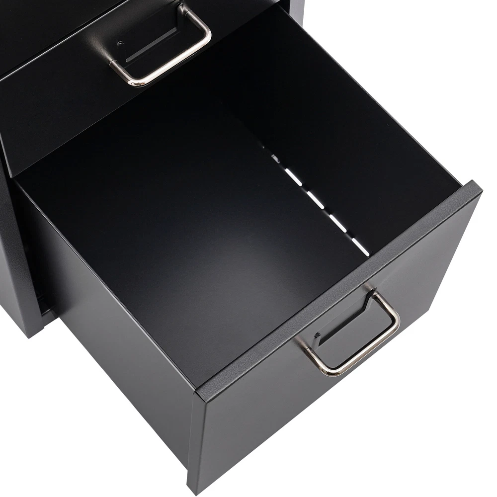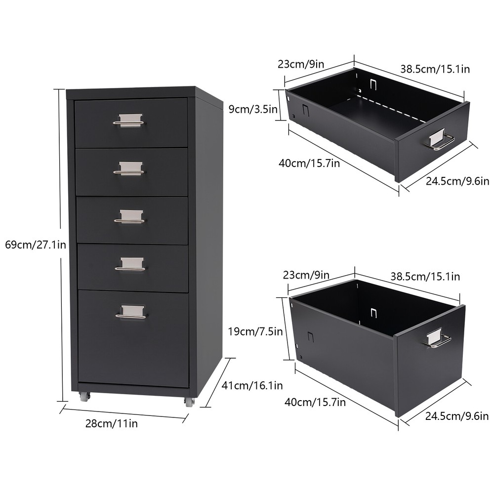 Application It can be placed in the kitchen, bedroom, living room, office, study, and more to store snacks, stamps, sticky notes, paper clips, scissors, bills, pens, pencils, business cards, notepads, cosmetic collections, toiletries, jewelry, hair accessories, crafts, etc. Specification Color: Black Style: Modern Shape: Rectangular Number of Drawers: 5 Assembly Required: Yes Installation Type: Free Standing Process: Electrostatic Spraying Material: Cold Rolled Steel, Aluminum Alloy, Rubber Each Tier Max. Load Capacity: About 5kg/11.02lbs Product Size: 28*41*69cm/11*16.1*27.1in Large Drawer Size: 40*24.5*19cm/15.7*9.6*7.5in Small Drawer Size: 40*24.5*9cm/15.7*9.6*3.5in Drawer Internal Area: 38.5*23cm/15.1*9in Package Included 1* 5-Drawer Storage Cabinet Metal File Storage Cabinet Storage Cabinet with 5 Drawers Drawer Storage Cabinet Description Maintaining cleanliness and order in our lives can have a positive impact on our mood and overall well-being. Our storage cabinet is crafted with high-quality cold-rolled steel and aluminum alloy , providing ample storage space while boasting a beautiful and functional design. With this cabinet, you can effortlessly and efficiently organize your belongings, leaving you feeling structured and at ease. Come and take it to enjoy a tidy life. Key Features Sturdy and Durable: This product is mainly made of high-quality cold-rolled steel and aluminum alloy, with electrostatic spraying treatment, it is not easy to rust, corrode, deform, or fade. Excellent Organizer: This set of 4 small drawers and a large drawer can sort and store data cables, kinds of files, and other daily essentials to create a cleaner, tidier office and home environment. Improve Space Utilization: This product occupies an area of 11*16.1 inches, so it can be placed in relatively narrow spaces, such as the gap between the bookshelf and the wall, making full use of your house space. Easy to Access: The tag slot on each drawer allows you to conveniently label and sort items in each drawer, which also ensures easy access to your items. Minimalist Style: The black color scheme combines a rectangular shape and simple lines to create a minimalist aesthetic and reveal a strong modern charm, adding a touch of refinement to your office . Stable Construction: The thickened material and rectangular structure give it excellent stability and a load capacity of about 11.02 pounds each tier , meeting your needs for storing various items without tipping o ver. Effortless Clean: Thanks to its smooth surface and simple construction, you can wipe it clean with a damp rag. Ideal Gift: Thanks to its practicality, it will make a fine gift for family, friends, and loved ones on Christmas, Father's Day, Mother's Day, birthdays, anniversaries, and holidays. Protective Package: To prevent the product from being damaged during transportation, we packed it with foam to protect your products to the maximum extent possible. Details Smooth Handles: It helps you open and close the drawer conveniently while conforming to the design of the cabinet. Durable Buckles: The drawers have anti-falling and anti-sinking buckles on both sides of the tail, which can prevent the drawers from sinking, tilting, or falling. Rubber Wheels: They allow for easy movement of this product while avoiding scratching the floor and generating noise. Application It can be placed in the kitchen, bedroom, living room, office, study, and more to store snacks, stamps, sticky notes, paper clips, scissors, bills, pens, pencils, business cards, notepads, cosmetic collections, toiletries, jewelry, hair accessories, crafts, etc. Specification Color: Black Style: Modern Shape: Rectangular Number of Drawers: 5 Assembly Required: Yes Installation Type: Free Standing Process: Electrostatic Spraying Material: Cold Rolled Steel, Aluminum Alloy, Rubber Each Tier Max. Load Capacity: About 5kg/11.02lbs Product Size: 28*41*69cm/11*16.1*27.1in Large Drawer Size: 40*24.5*19cm/15.7*9.6*7.5in Small Drawer Size: 40*24.5*9cm/15.7*9.6*3.5in Drawer Internal Area: 38.5*23cm/15.1*9in Package Included 1* 5-Drawer Storage Cabinet Other Accessories for Assembly Notes Please allow the slight color difference caused by the shooting light and 1-3cm error due to manual measurement and make sure you do not mind before ordering. Payment Delivery details Terms of sales About us Contact us Payment We accept ebay payment 。 Fees such as import duties, taxes are not included in the item price or shipping costs. These charges are the buyer's responsibility. Delivery details Shipping: 2-9 working days to: USA Terms of sales We maintain high standards of excellence and strive for hundred percent customer satisfaction. Feedback is very important to us. We hope that you contact us immediately before you give neutral or negative feedback, so that we can address your concerns. It is impossible to address issues if we do not know about them! About us Your satis faction is our ultimate goal. We work hard to earn your trust and future business. Our certified technicians have tested each item before shipping. The unit comes with 1 year limited warranty on all manufacturing defects. a) If you receive a defective item, you may return it or ask for a discount. Please contact us within 14 days after you receive the package. b) What you returned must be intact and in its original packaging as re? u. Customer is responsible for shipping costs of the returned item. c) We will cover the cost of shipping back t with the shipping rate indicated in the registration page. We will send you a new unit or refund the full payment you paid. Thank you. Contact us Business Hour Business Hour: Monday To Friday: 8:30 AM to 5:00 PM (Beijing China time) Due to time zones, our reply to your questions may not be immediately. But within above working time, we will reply your email within 24 hours. If it's non-workdays, please kindly be patient and wait till Monday. Please contact us with ebay message. Please feel free t
