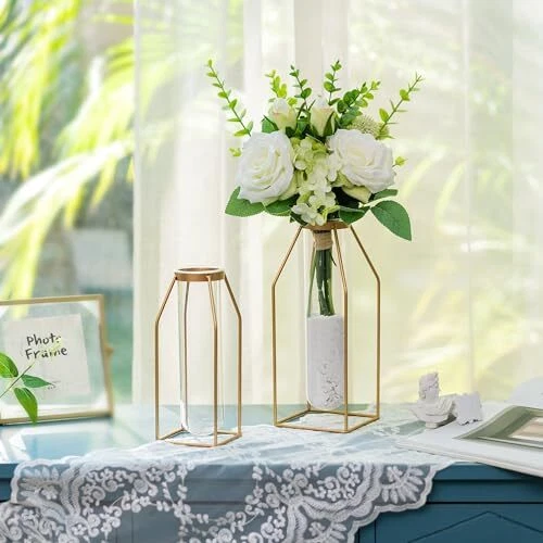 Menu 1. We require immediate payment. 2. We currently accept payment via eBay managed payments only. 3. Once payment is cleared, we will dispatch your shipment within 1-3 business days. Please refer to the "Shipping" tab for more information regarding shipping speed to your destination. Metal Flower Vase Table Decor - Gold Frame Vase with Glass Test Tubes 8"/10" Modern Bud Vase for Coffee Table Living Room Abstract Geometric Art Vase for Rose Hydroponic Plant Pampas Product description GEOMETRIC ART FLOWERS VASES - The test tube rack vase features a unique geometric design with an elegant and modern look, and also comes with removable test tubes that are easy to clean, bringing an artistic and aesthetic touch to your home. HIGH QUALITY MATERIAL - Our modern geometric test tube vases are handcrafted from high quality metal and thickened transparent glass. You can use it for long-lasting because of the sturdy and stable material. And this glass metal vase is well packaged to prevent the product from breaking. If t are any problems with the product, please contact us for assistance. MULTI PURPOSE - metal gold frame vase is perfect for match with hydroponic plant, rose, tulip, grass, pampas and artificial flowers. You can also fill them with various decorative items such as pebble, pearls and wheat. Even without the ornamentation of plants, it also will be a great decoration for anyw. FOR ALL SPACES - Our minimalist nordic flower vase great for adding a modern feeling to living room, dining room, bedroom, bathroom, office, kitchen, coffee table, fireplace or shelf. This geometric art style flower vase is perfect as a warm gift for mum, woman, friend, wife, girlfriend, sister and grandma on special days. ABOUT SIZE - gold wire vase is a good choice for home decoration. S: Height: 7.68in/19.5cm; Bottom diameter: 3.15in/8cm; Glass Tube: 2.36x7.68in/6x19.5cm. L: Height: 9.65in/24.5cm; Bottom diameter: 3.94in/10cm; Glass Tube: 2.36x9.06in/6x23cm. Note: flowers and plants are not included. PLEASE MESSAGE US IF YOU HAVE ANY OTHER QUESTIONS, AND MANY THANKS FOR READING ALL OF THIS. Copyright ©#. All Rights Reserved.
