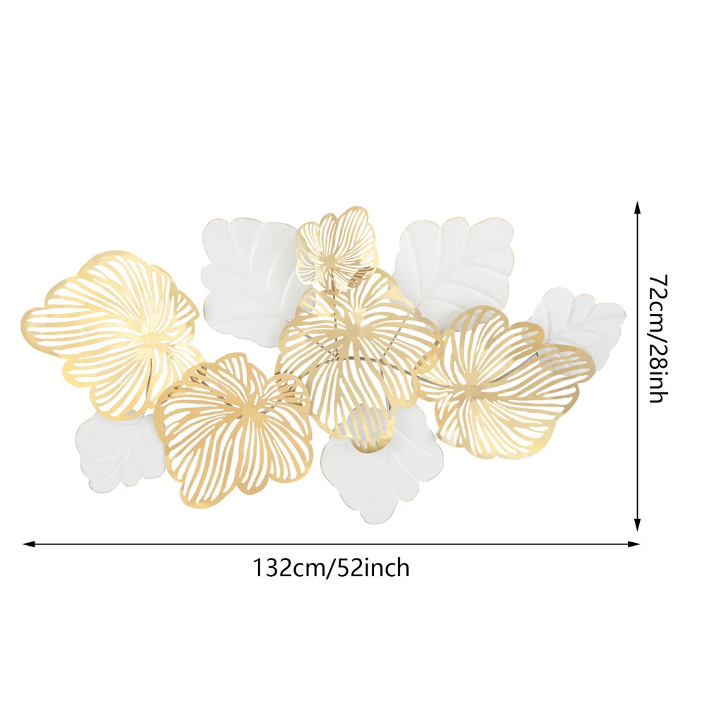 Specification Style: Scandinavian Style Color: White, Gold Material: Iron Exterior Paint Process: High-temperature Baking Paint Process: Wrought Iron Forging Gross Weight: 6kg/13.2lbs Product Size: 132*72cm/52*28inch Package Size: 135*75*6cm/53.1*29.5*2.4inch Installation Use a tape or straightedge to measure the product hook spacing, and then mark the point to be perforated with a pen. Use a 6mm/0.24in impact drill to punch holes in the marked center, the length of the drill bit is the length of the expansion cap. Hit the expansion cap. Use a hammer to hit the expansion cap into the location of the drilled hole Screwing. Use a screwdriver to screw the screws into the expansion cap, leaving a distance between the screw and the wall to hang this product. PACKAGE 1* 3D Metal W Metal Flowers +Leaves Wall Art Large White +Gold Sculpture Hanging Home Decor Wall Art Metal Flowers & Leaves Large Gold & White Sculpture Hanging Home Decor Description Everyone wants to have a beautiful and warm home. Our 3D metal wall art leaves will add some beauty to your home. It is made of hard and durable iron. The high-temperature baking paint gives it an exquisite and shiny look. The Scandinavian style makes it suitable for most home decoration styles. It is suitable for living rooms, bedrooms, hallways, galleries, cafes, restaurants, hotels, etc. Key Features Great Durability: This 3D metal wall decoration is made of hard and durable iron. It is also finished with an iron forging process, so it has a good quality with a long life span. Exquisite and Luxurious Appearance: The openwork carvings of gold flowers and white leaves give the wall decor a very luxurious and beautiful look. So it is a wonderful decoration for your room! 3D Decoration: Our 3D decoration is much more dimensional than many flat decorations. The 3D design makes the whole decoration look lifelike. Solid Structure: Each leaf of this wall decoration is welded and fixed to a metal rod . So the structure is very stable. The leaves are uneasy to deform and loose. Uneasy to Fade: This wall decoration has a high-temperature baking paint process. It stays that color for a long time. It looks new even after a long time of usage. Suitable Size: It measures 52*28inch. This size is suitable for many walls because it will not be too eye-catching and just be the finishing touch to the wall decoration. Easy to Install: This wall decoration is very simple to install. We have provided you with mounting screws. All you have to do is hang it on the wall with the screws. It is convenient and simple for you. Easy to Clean: This wall decoration is very convenient and labor-saving to clean. You can wipe the surface dust off with a towel. An Ideal Gift: This exquisite wall decoration is also a great gift. If your friends or family are having a housewarming, you can gift them this decoration. Guaranteed Customer Service: We aim to provide quality products and services. If you have any problems, please feel free to contact us. We will reply and solve the problem for you as soon as possible. Details Fine Workmanship: The golden flowers of this wall decoration are hollowed-out flowers, and the leaves are simulated leaves with real leaf textures. They make the wall decoration look very exquisite and lifelike. Smooth Surface: This surface of this decoration is finely polished and polished. So its surface is very smooth and shiny. Moreover, this decoration does not have sharp edges, so it's safer to use. Application It is suitable for living rooms, bedrooms, hallways, galleries, cafes, restaurants, hotels, etc. Specification Style: Scandinavian Style Color: White, Gold Material: Iron Exterior Paint Process: High-temperature Baking Paint Process: Wrought Iron Forging Gross Weight: 6kg/13.2lbs Product Size: 132*72cm/52*28inch Package Size: 135*75*6cm/53.1*29.5*2.4inch Installation Use a tape or straightedge to measure the product hook spacing, and then mark the point to be perforated with a pen. Use a 6mm/0.24in impact drill to punch holes in the marked center, the length of the drill bit is the length of the expansion cap. Hit the expansion cap. Use a hammer to hit the expansion cap into the location of the drilled hole Screwing. Use a screwdriver to screw the screws into the expansion cap, leaving a distance between the screw and the wall to hang this product. PACKAGE INCLUDED 1* 3D Metal Wall Art Leaves 10* Screws Notes Please be aware that the shelf should be installed on a solid wall, not on a hollow wall. Please allow the slight color difference caused by the shooting light and 1-3 cm error due to manual measurement, and make sure you do not mind before ordering. Payment Delivery details Terms of sales About us Contact us Payment We accept ebay payment 。 Fees such as import duties, taxes are not included in the item price or shipping costs. These charges are the buyer's responsibility. Delivery details Shipping: 2-9 working days to: USA Terms of sales We maintain high standards of excellence and strive for hundred percent customer satisfaction. Feedback is very important to us. We hope that you contact us immediately before you give neutral or negative feedback, so that we can address your concerns. It is impossible to address issues if we do not know about them! About us Your satis faction is our ultimate goal. We work hard to earn your trust and future business. Our certified technicians have tested each item before shipping. The unit comes with 1 year limited warranty on all manufacturing defects. a) If you receive a defective item, you may return it or ask for a discount. Please contact us within 14 days after you receive the package. b) What you returned must be intact and in its original packaging as re? u. Customer is responsible for shipping costs of the returned item. c) We will cover the cost of shipping back t with the shipping rate indicated in the registration page. We will send you a new unit or refund the full payment you paid. Thank you. Contact 