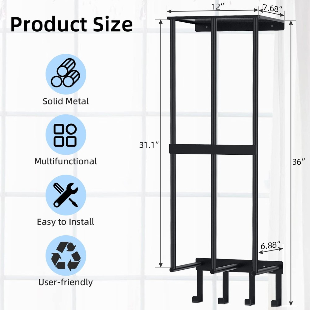 Camping Chair Wall Storage for Garage - Metal Rack Holder, Floating Shelf, 4 Hooks, Stainless Steel - Beach Chair and Umbrella Organizer, Black 【Camping Chair Storage for Garage】This camp chair storage for garage comes with floating shelves and 4 hooks, providing larger capacity, saving floor space, getting camping chairs off the floor from your garage and onto the unused wall space. Stylish and simple desgin is the first choice for home garage decor as well as garage storage system 【Multipurpose Garage Storage Shelf】The wall chair holder is equipped with a floating shelf for storing smaller objects such as mountain bike cap. The integrated design is ideal for placing beach umbrellas, poles, piping, yoga mat or other long items. There are 4 hooks for D buckle, hammock bag, ropes, mountaineering bag, etc 【Premium Quality Camping Chair Holder for Garage】The iron frame of chair organizer for garage is specially treated and the paint surface is not to peel off and deform, which is more beautiful and safe to use. The installation of the chair storage garage requires only 4 holes in the wall, which causes less damage to the wall 【Large Capacity Garage Organization】Tray size 11.8*7.7in(30*9.5cm), item height floor to top: 30.3in/77cm(without hooks), the hooks length: 3.9in/10cm 【Ideal Gifts + Easy Installation】The camping chair organizer comes with exquisite packaged with all required hardware and clear installation instructions. It is perfect for a holiday gift for friends and family. If you have any question, please email us and we will reply you within 24 hours This is a multifunctional storage holder with 4 hooks. The camping chairs wall storage is made of premium grade stainless steel, matte black painted finish. Suitable for more modern home garage, exercise gym, tool room, living room decorative, adding a lot of beauty and spacing saver to the garage. Specification: Material: Metal Color: Black Style: Camping Chair Storage Rack Suitable: Home Garage, Tool Room, Exercise Gym, Living Room Size: Storage Shelf: 30.5cm/12in x 19.5cm/7.68in Storage Camping Chair Rack: 78cm/31.1in x 17.5cm/6.88in Total Length: 91.5cm/36in Product Include: Camping chair wall mounted x1, manual x1. Feature: 1. This camping chair storage organizer can help you store your camping chair, mountain bike cap, beach umbrellas, poles, piping, D buckle, hammock bag, ropes, mountaineering bag, etc.. 2. This camping chair wall storage for garage space savering and as home gym, living room decor. 3. These garage storage racks are all made of premium metal material parts. 4. Camping chair storage is perfect addition to your home garage and saves precious floor space. Shipping We offer FREE shipping on all orders! We ship within Three business days of payment, usually sooner. We use a selection of shipping services such as UPS, FedEx, USPS etc. We only ship to the lower 48 states, no APO/FPO addresses or PO Boxes allowed. Local pickups and combined shipping options are not provided at this time. Return You can return a product for up to 30 days from the date you purchased it. Any product you return must be in the same condition you received it and in the original packaging. Please keep the receipt. Payment We accept payment by any of the following methods: PayPal Please pay as soon as possible after winning an auction, as that will allow us to post your item to you sooner! Feedback Customer satisfaction is very important to us. If you have any problem with your order, please contact us and we will do our best to make you satisfied. Contact Us If you have any queries, please contact us via ebay. We usually respond within 24 hours on weekdays. Please visit our eBay store to check out other items for sale! Thank you for shopping at our store.