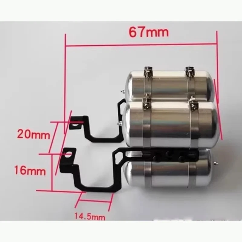 Metal gas tank decorate For 1/14 Tamiya RC truck SCANIA 770S R620 VOLVO BENZ Arocs MAN TGX Car Accessories Features: 100% brand new and durable Make your model more realistic Suit for 1/14 RC Tamiya tractor series Specifications: Material: Aluminum alloy Color: black, silver Quantity: 1 set Note: This product is a bulk set and needs to be assembled by yourself.