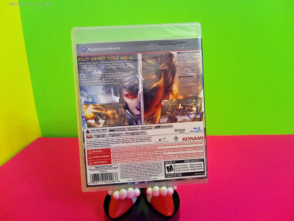 Rating: M - Mature Platform: Sony PlayStation 3 Region Code: NTSC-U/C (US/Canada) Game Name: Metal Gear Rising: Revengeance MPN: 1 Publisher: Konami Genre: Action & Adventure, Hack and Slash, Strategy gtin13: 0083717202066 Release Year: 2013 UPC: 0083717202066