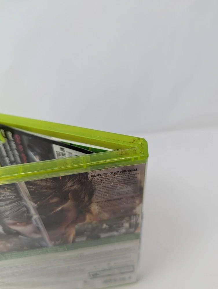 Moderate scratching on disc. Sticker residue on case. Some brown grime on top of case. The product is "Metal Gear Rising: Revengeance" for the Microsoft Xbox 360, released in 2013. This action and adventure game is part of the Metal Gear Series published by Konami. It is rated M for Mature audiences. The game features a manual and offers players an immersive gaming experience within the Metal Gear universe.