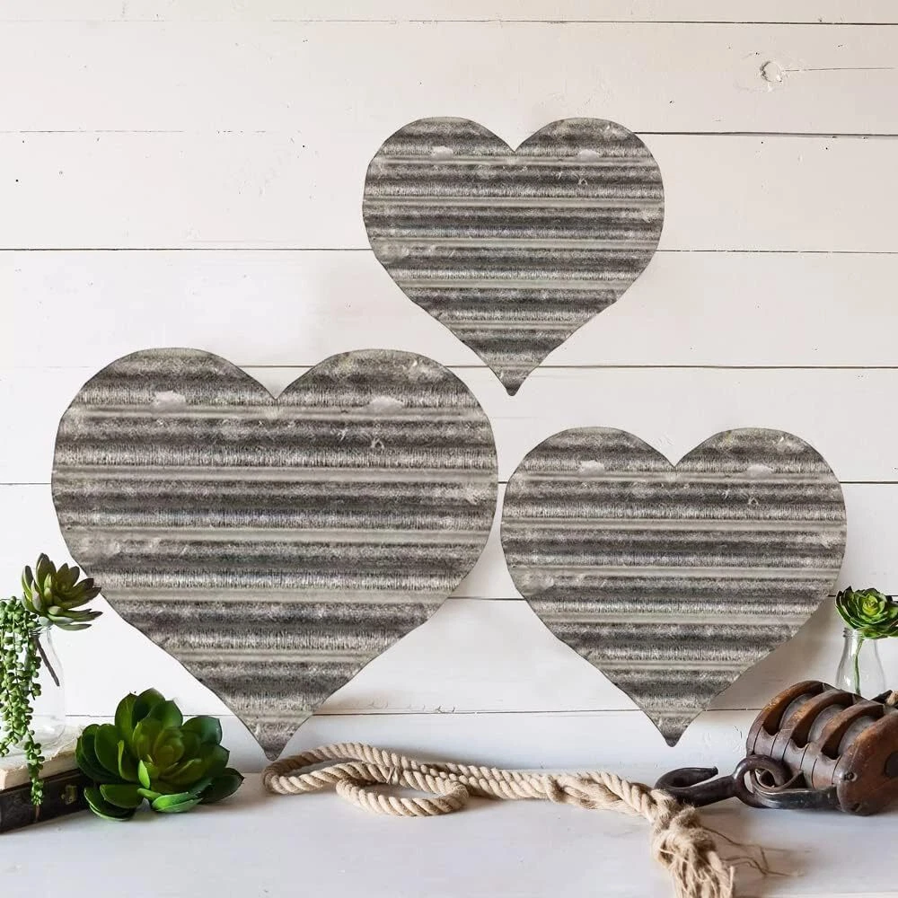 - Metal Heart Wall Decor, Galvanized Steel Decorations, Rustic Hanging for We... 【Dimensions】: Large: 9-3/4" x 9-3/4" , Medium: 7" x 7", Small: 4-3/4" x 4-3/4" 【Design】:The product is made of metal, and the surface of the iron sheet is corrugated. There are triangular hanging holes on the back, which are especially suitable for hanging. You only need to punch holes in the wall and drive in the screws (the screws need to be provided by yourself), and you can hang it anywhere. 【Adorable Decoration】:It is suitable for hanging anywhere in the home, whether it is the living room, bedroom, kitchen, entryway or garden, it will be a lovely decoration in the home. 【Gift】: This is a great gift, whether it's Valentine's Day, Christmas or a wedding, it will bring blessings to the recipient. 【Buy It at Ease】If you have any questions, don’t worry, feel free to contact us, we will respond within 24 hours! Shipping We offer FREE shipping on all orders! We ship within Three business days of payment, usually sooner. We use a selection of shipping services such as UPS, FedEx, USPS etc. We only ship to the lower 48 states, no APO/FPO addresses or PO Boxes allowed. Local pickups and combined shipping options are not provided at this time. Return You can return a product for up to 30 days from the date you purchased it. Any product you return must be in the same condition you received it and in the original packaging. Please keep the receipt. Customer satisfaction is very important to us. If you have any problem with your order, please contact us and we will do our best to make you satisfied. Contact Us If you have any queries, please contact us via ebay. We usually respond within 24 hours on weekdays. Please visit our eBay store to check out other items for sale! Thank you for shopping at our store.