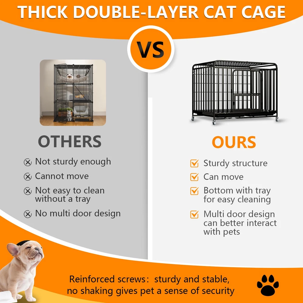 HomeMetal Heavy Duty Dog Cage Pet with Wheels and Crate Tray for Kennel Black S/M/L-