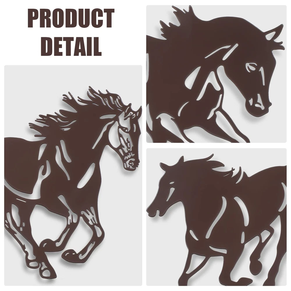 Features: Easy to hang and match: These metal horse decorations for wall have hooks on the back, which can be easily hung on the wall and can be matched well with your home style, whether your home is retro or modern style. Sweet gift: You can give these western horse wall decors as nice housewarming, birthday or festival gifts to your family, friends, or other people who love horse, readily enhancing relationship. Specifications: Material: metal Color: dark brown Size: approx. 9.2 x 8.5 inches Package includes: 3 x Metal horse rustic wall decors Notes: Manual measurement, please allow slight errors on size. The color may exist a slight difference due to different screen displays. Classic design: with flying whips and strong limbs, these 3 different horses on the metal western wall decor come running towards you, with rustic style and fine workmanship, classic and vivid, improving your overall decoration of your house Quality metal: each metal horse wall sculpture is made of metal material, strong and sturdy, reliable and reusable, not easy to deform and rust, with exquisite laser cutting technology to make them look lifelike, giving you a pleasant use experience Appropriate Size: these 3 metal galloping horses wall arts are with a similar size, about 9.2 x 8.5 inches, conspicuous enough for you to decorate your wall and get attention, giving your room an elegant look 3D shadow: when these metal galloping horses wall arts are decorated on the wall, some natural shadows can be displayed on the wall, making themselves look more three dimensional, just like running in the wind Wide Occasion: the horses western metal silhouette is suitable for various occasions, such as such as cabin, bedroom, living room, office, porch, garage, kitchen, garden, yard and more, a nice ornament to show your taste and brighten up your world