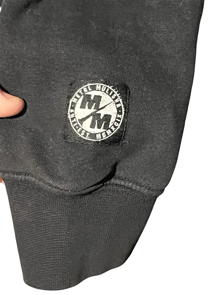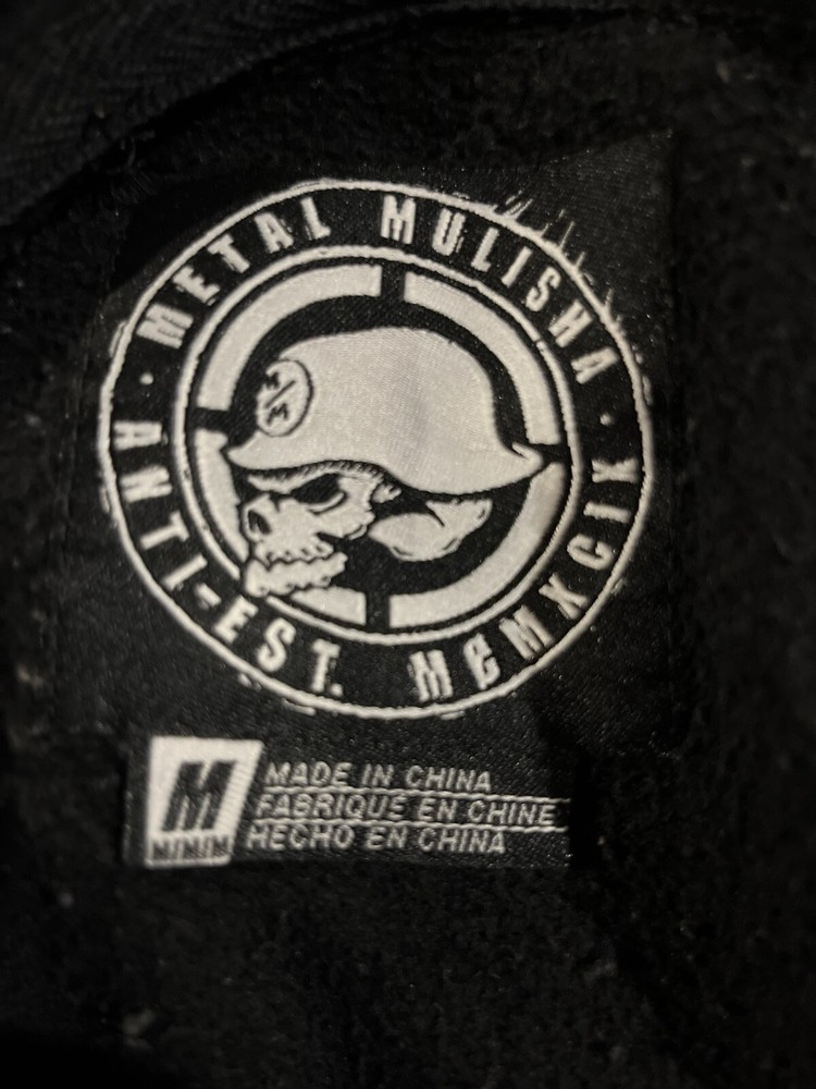 Metal Mulisha Men’s Black Hoodie Size Medium Metal Mulisha Men’s Black Hoodie Size Medium Unisex Some holes ( please see all pictures) Hoodie with drawstring Kangaroo pocket Logo patch on right sleeve Used condition holes and regular wash wear Motocross wear Dirt bike wear Bicycle wear FMX Supercross