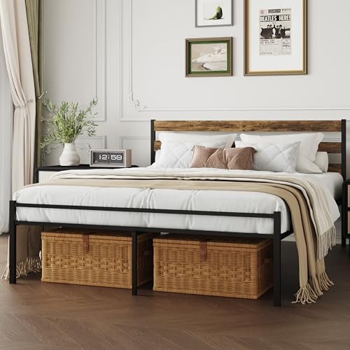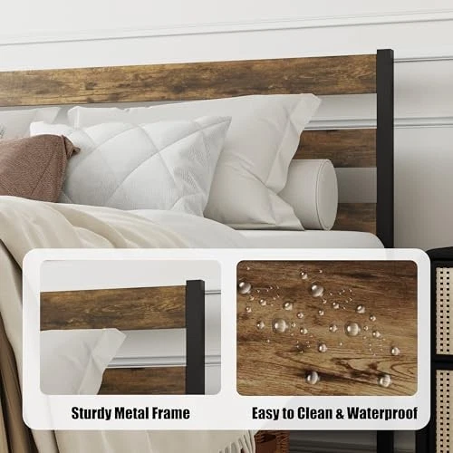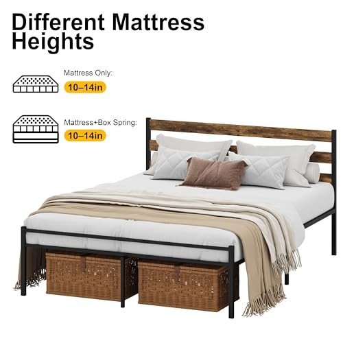 Metal Platform Bed Frame with Headboard Size Bed Frame Queen Walnut Colour