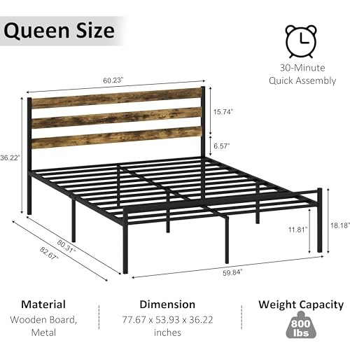 Return Policy Fast Delivery Trusted seller Metal Platform Queen Bed Frame with Headboard, Queen Size Bed Frame 59.8W x 82.7L x 36.2H inches, Wood and Faux Leather, Walnut (Walnut Colour, Queen) Product Description STURDY CONSTRUCTION: Metal platform queen bed frame with wooden slats supports up to 1000 pounds, eliminating the need for a box spring or mattress foundation MODERN DESIGN: Features a sleek faux leather upholstered headboard and walnut color finish, perfect for contemporary bedroom decor SPACIOUS DIMENSIONS: Measures 90.9 inches long, 61.8 inches wide, and 43 inches high, providing ample sleeping space EASY ASSEMBLY: Simple tool-free assembly process with included components and clear instructions for quick setup PREMIUM FEATURES: Rectangular frame design, and durable wood-metal hybrid construction Shipping Returns Payment Shipping Shipping is FREE to all addresses other than APO/PO boxes in the lower 48 states. All our stock ships from US-based warehouses. Shipped via USPS or UPS (depending on location and package weight) Unless stated otherwise, all orders will ship within 24-72 hours of your payment being processed. Check our feedback to see the great reviews of FAST shipping we offer. Returns Seller does not accept returns Payment We currently accept payment via eBay managed payments only. Once payment is cleared, we will dispatch your shipment within 1-3 business days. Please refer to the "Shipping" tab for more information regarding shipping speed to your destination.