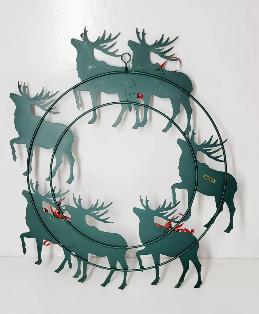 Common Name:metalProduct:Door DecorationForm:WreathSize:14"Theme:SeasonalArtificial/Fresh:ArtificialType:Wreath HangerOccasion:ChristmasNumber in Pack:1Country/Region of Manufacture:TaiwanColor:GreenBrand:UnbrandedItem Width:12"Item Height:14 inMaterial:Metal