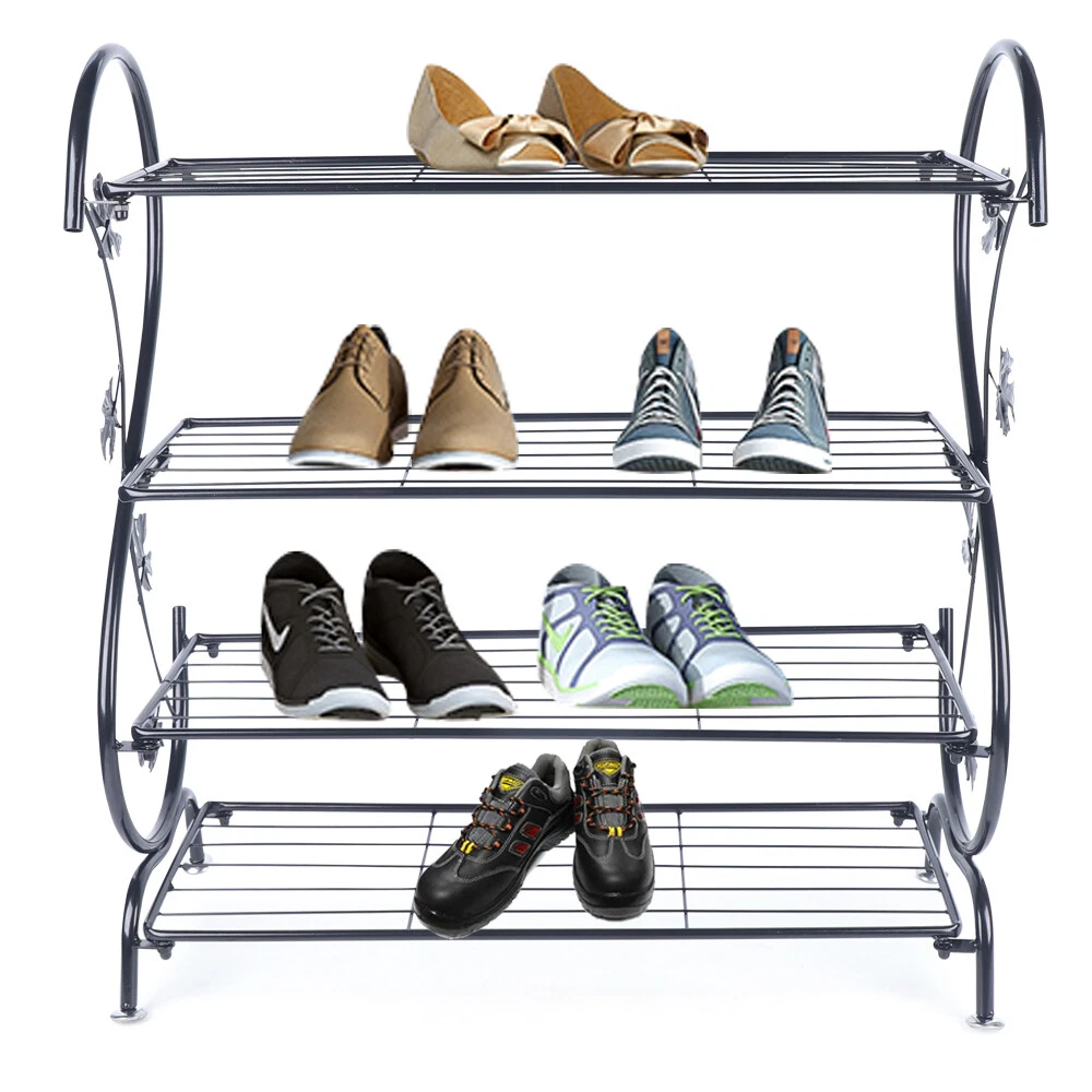 Metal Shoe Display Rack Ladder-Shaped Stand Shelf 4 Tier Metal Plant Stand