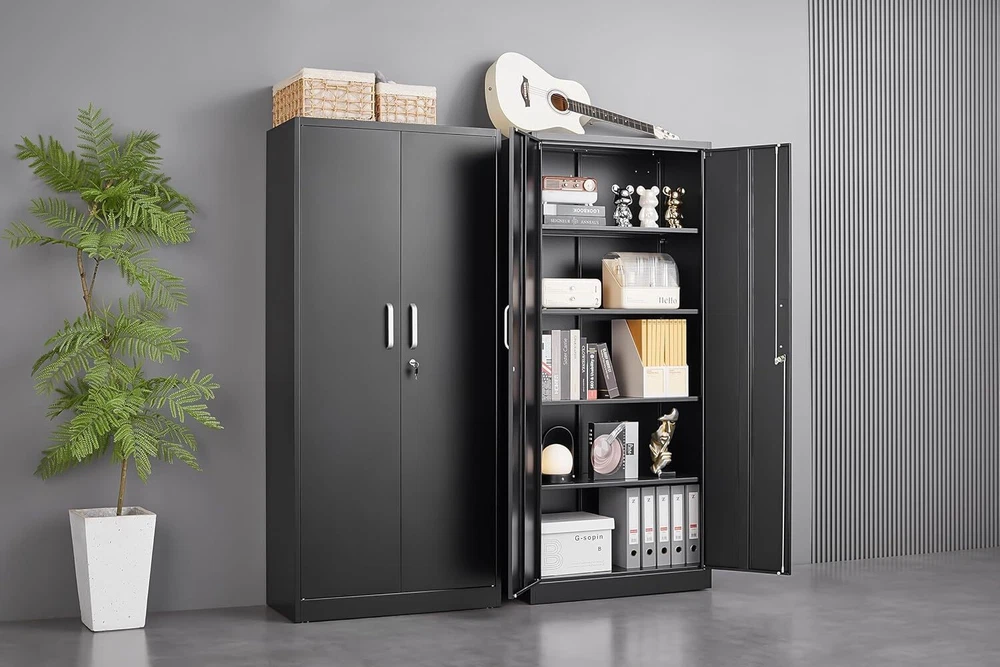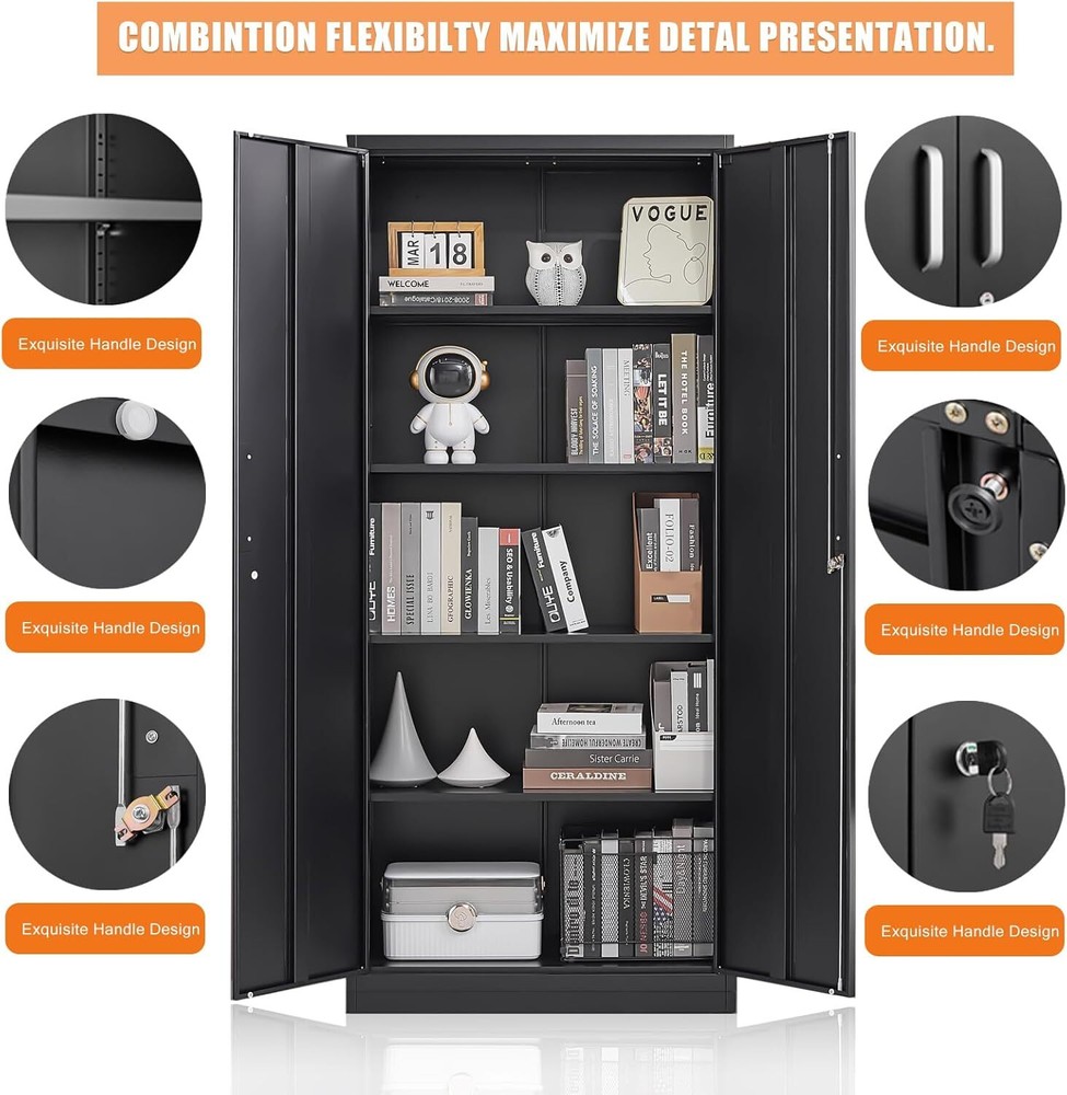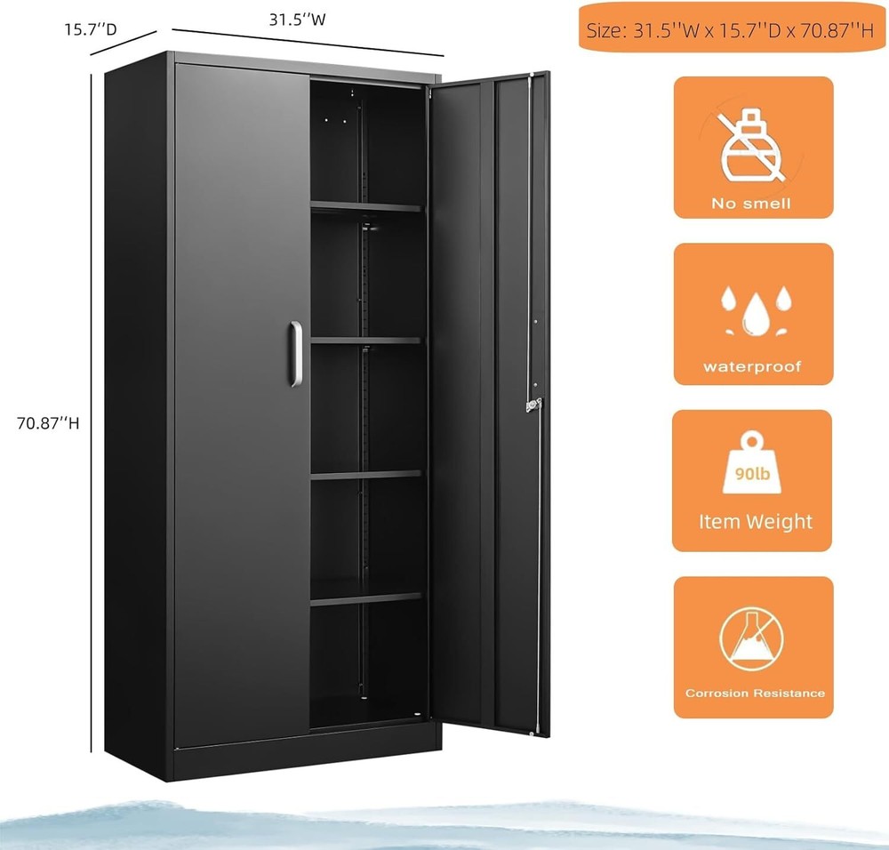 The item was shipped through US Stock, so it arrived faster than expected All items are brand new and unopened, 100% authentic, 24 hours message reply Metal Storage Cabinet with Adjustable Shelves, Pantry Cabinet with 2 Doors, Lockable Garage Storage Cabinet, Tool Cabinet, File Storage Cabinets -71" Black Brand: Allouncer Color: Black Recommended Uses For Product: Closet Cabiinet, Files & Folders, Pantry Cabinet, Kitchen Storage Cabinet, Garage Storage Cabinet, Tool Cabinet, Food Storage Cabinet, Laundry Cabinet Product Dimensions: 15.7"D x 31.5"W x 70.87"H Special Feature: Dent Resistant, Dent Proof, Heavy Duty, Scratch Resistant, Adjustable Shelf About this item Practical Design and Superior Load-bearing Capacity: Our metal storage cabinet is equipped with locks and 5 adjustable shelves, offering flexible storage space and convenient usability. Each shelf can withstand 200 pounds, making it ideal for garage storage, kitchen pantry storage, and laundry room cabinets. Whether you need to store pantry items, tools, or laundry essentials, our cabinet provides secure and organized storage. Spacious Design and Versatile Application: Besides serving as an ideal pantry cabinet or garage storage cabinet, our unit's interior design creates additional space, providing ample storage room for your belongings. Suitable for various settings, from kitchen storage cabinets to metal storage cabinets in the garage, our cabinet meets diverse storage needs, ensuring item safety and organization. Exceptional Durability and Outstanding Security: Crafted from high-quality cold-rolled steel plate, our metal cabinet boasts robust construction for long-lasting durability. Enhanced with advanced lock cores and a three-point locking system, it guarantees the security of your valuable items. Ideal for locking cabinets in the garage or tool cabinets in workshops. Thoughtful Design: Our tall cabinet not only prioritizes functionality but also emphasizes aesthetic design. With its sleek and modern appearance, it blends practicality with style, suitable for various environments such as laundry cabinets or kitchen pantry cabinets, adding a touch of sophistication to your space. Multi-functional Storage: Featuring a cleverly designed interior with adjustable partitions, our storage cabinet with doors and shelves accommodates items of various sizes and shapes. Whether it's documents, tools, appliances, or pantry items, they can be neatly organized and maximally utilized, ensuring orderly storage and efficient space utilization.