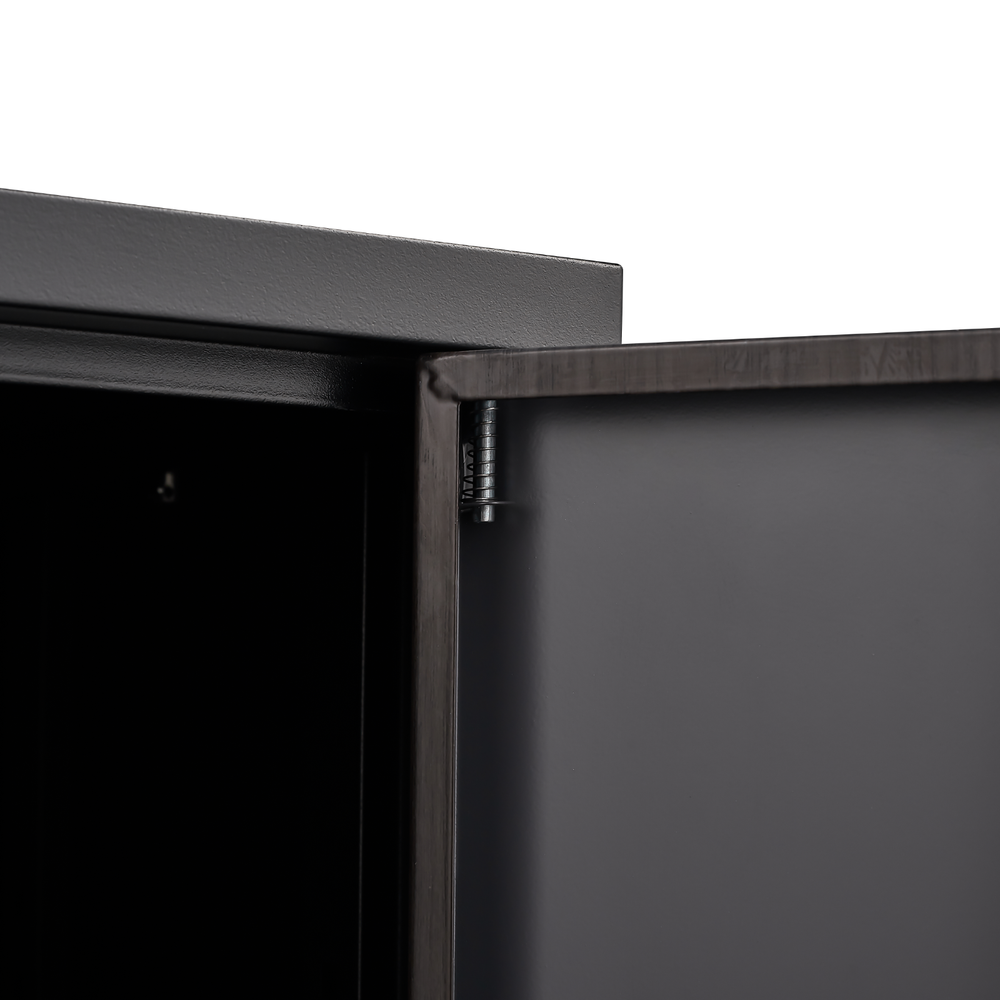 Specification Product Information Item Code: W1247P216101 Product Type: Single Box Product Product Name: Metal Storage Cabinet with Locking Doors and Adjustable Shelf, Folding Filing Storage Cabinet , Folding Storage Locker Cabinet for Home Office,School,Garage, Black Place of Origin: China Main Color: Black Main Material: Steel Product Style: Modern Cabinets Storage Quantity: 3-4 Shelves Cabinets Features: Door Locks Use Case: Office Cabinets Type: Filing Cabinets Product Dimensions Assembled Length (in.): 13.78 Assembled Width (in.): 27.50 Assembled Height (in.): 41.97 Product Weight (lbs.): 38.58 Package Size Length (in.): 44.80 Width (in.): 30.30 Height (in.): 5.10 Weight (lbs.): 40.00 Product Features Easy assembly: The folding cabinet is relatively simple to assemble, generally requiring only the instructions to complete the assembly.Since folding cabinets are so easy to assemble and disassemble, consumers can save a lot of effort and time. As the folding cabinet can be folded into a compact size, it is convenient for transportation and carrying, especially for users who need to move frequently or have limited living space. Adjustable height dividers can meet the storage needs of different sizes and types of items, and the height of the dividers can be adjusted as needed to maximize the use of storage space. By adjusting the height of the partition, it can make the space of the cabinet to be utilized more reasonably, increase the storage space, and avoid the problem of wasted space. Meet the needs of different use scenarios. The advantages of handle locks are mainly due to their simplicity, ease of operation, robustness, widespread use and high security. Description Adjustable dividers Adjustable height dividers can meet the storage needs of different sizes and types of items, and the height of the dividers can be adjusted as needed to maximize the use of storage space. Exquisite Locks The lock has high security, effectively prevents illegal invasion and theft, has a long service life, is convenient and easy to use, and has an aesthetically pleasing appearance. Spring loaded door axle Spring loaded door shafts are fixed to the door frame and door panel by means of springs, etc., which makes the installation of door shafts firm and reliable. This fixing method can effectively prevent the door shaft from loosening or falling off and improve the stability of the door. Solid Steel Tube Locking Shaft The steel locking shaft is made of high quality steel, specially treated and processed for high strength and wear resistance, capable of withstanding large loads and repeated rotational friction. The steel lock shaft is manufactured with high precision, good rotational accuracy and stability Folding cabinet Folding cabinet Folding cabinet Folding cabinet