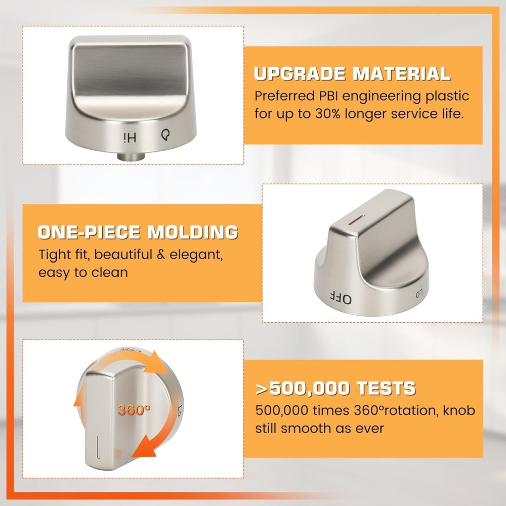 Free eBay listing template designed by dewiso.com Metal W11239985 W10850015 Stove Knob Replacement Compatible with Whirlpool WFG525S0HZ1 WFG550S0HZ0 WFG525S0HZ0 WFG525S0JV0, W11032553 Range Oven Knob Replace PD00061875 4845290 AP6333411 PS12578779 FREE AND FAST SHIPPING! About this item 【Product Upgrade】: W11239985 replacement knobs is made of Alloy as a whole, which is more heat-resistant, wear-resistant, won't burn your hands and other features, overall reinforcement, not easy to deform. With a thick solid center ring, after 50,000 times of rotation experiment, the knob is smooth as usual. 【Compatible Models】:This stove knob replacement is specially designed for Whirlpool gas stove W11239985,4845290, PS12578779 knob compatible with models WFG525S0HV1, WFG550S0HV1, WFG550S0HZ1, WFG550S0LZ1, WFG525S0HV0 and more. 【PERFECT FIT】:This WFG550s0hz0 knobs can be highly matched with the original fittings of your oven or gas cooktop, making it easy to control and adjust accurately. The gas cooktop knobs designed specifically for Whirlpool ovens/stoves will fit your oven better and provide better cooking results than generic styles. 【Easy to Install】: The stove knobs WFG525S0HV1 is designed for efficiency and comfort. It is simple to install and easy to use, you don't need any tools to replace broken knobs and get your stove running again, saving you time. 【After-sales service】: We are committed to customer satisfaction. If you are not satisfied with the product for any reason, please contact us. We will provide you with a satisfactory solution within 12 hours. Product We offer a 30-Day Return Policy on items which you are not completely satisfied with. You have the option for a full-refund or an exchange of the item. No returns are available on items shipped outside of the US . Shipping We offer Free Shipping to the US and ship within 2 business days of payment, usually sooner. We use UPS express shipping. That's why your products are usually delivered within 3 days . Contact We try our very best to make sure every customer is completely satisfied. If there's a problem , message us! We're happy to help. 24/7 live chat available.