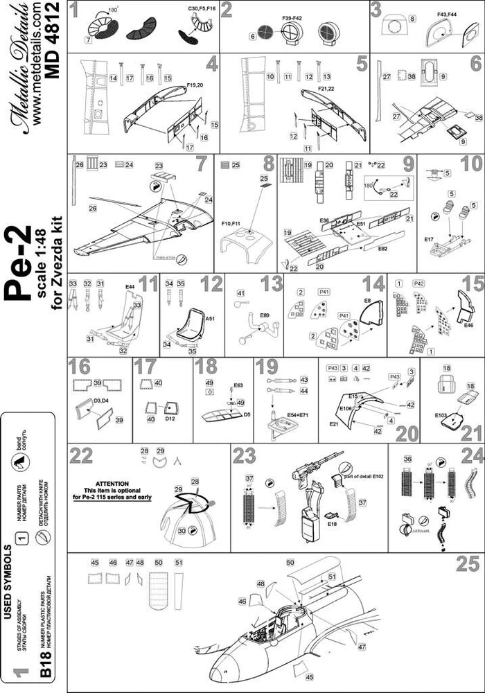 MD4812 Detailing set for aircraft model Pe-2 Scale: 1:48 Manufacturer: Metallic Details (Ukraine) Country/Region of Manufacture: Ukraine Paint: Unpainted, Unassembled, Kit do not contain paints and glue. Condition: New in Box Features: Kit Kit contains parts for detailing the interior and exterior of the aircraft. "The Pe-2 (NATO name Buck) - a Soviet light bomber, also successful in the roles of heavy fighter, reconnaissance and night fighter designed by Petlyakov. Produced: 1939–1954. Operators: Bulgaria, China, Czechoslovakia, Finland, Hungary, Poland, Soviet Union, Yugoslavia." The figures are not painted!!! ----------- This is a plastic model kit. Assembly and painting is required. Paint and glue is NOT included. Item Type: Scale model kit Commodity Attribute: Assembly The model is a plastic assembly model and needs to be assembled and painted by yourself You need an extra purchase of the glue, paint and so on!