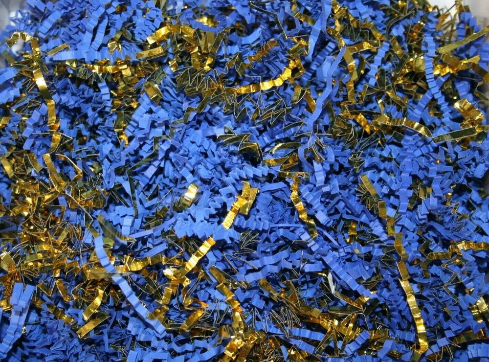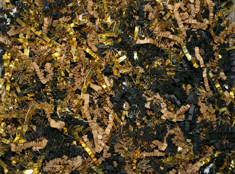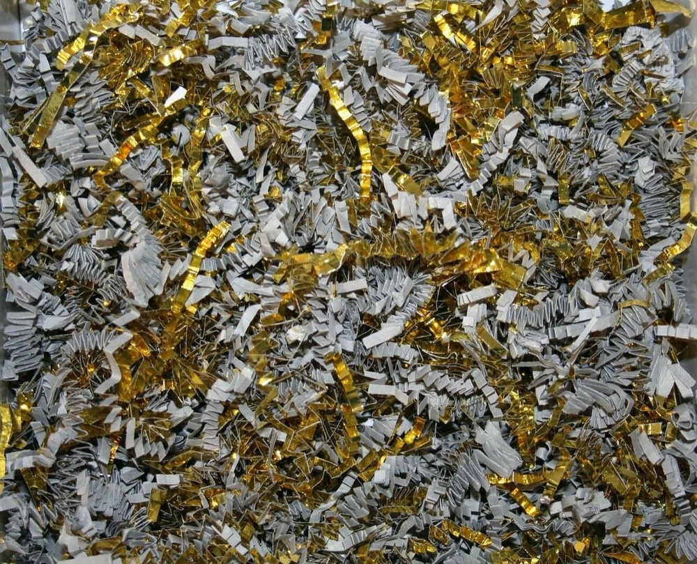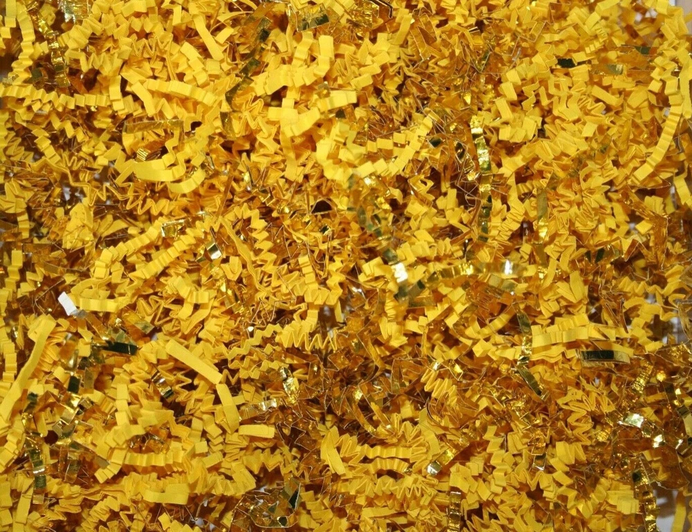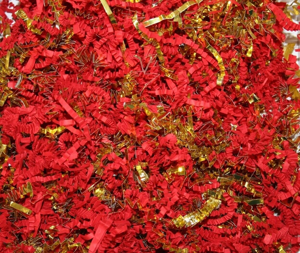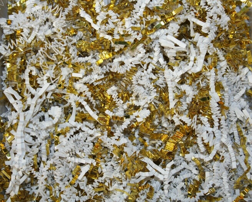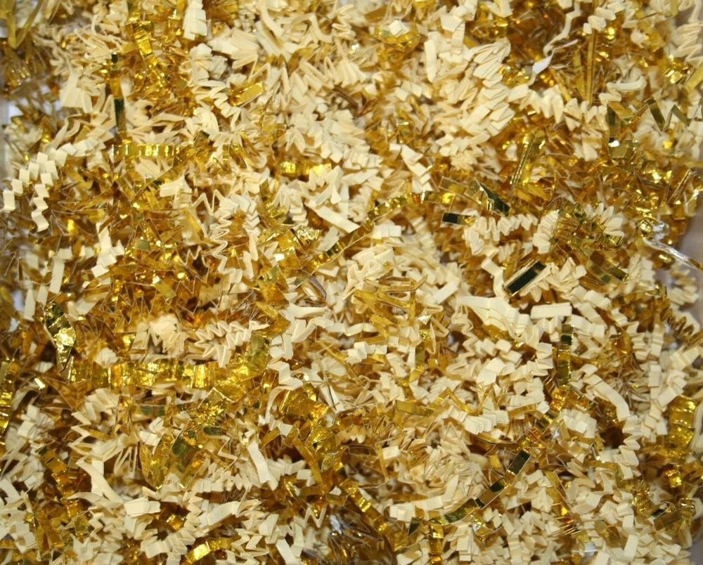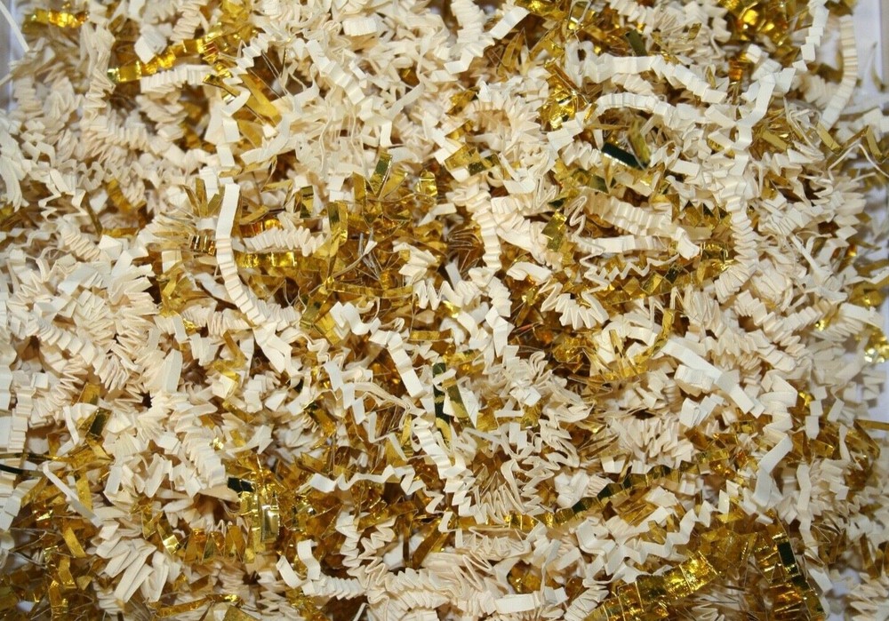 D R E A M P A R T Y C R E A T I O N S Thank you for visiting us: Paper Shred with GOLD TRIM for Packaging Gift Box / Basket Filler Attractive void fill for baskets and gift boxes Colored shredded paper makes a great bed for displaying your product. Use for the Holidays! Christmas, New Years, Anniversary, Wedding, Valentines' Day, Easter Basket or Birthday gift wrap filler. 10 Oz bag is Five hand full of shred. Decorative Shred Uses includes: Filling Vases, Bowls and Baskets. Sprinkle around Partyware on your Table top. Filling Party favor, Bags or Boxes. Placing Shred around Floral Displays. HOW TO COMBINE SHIPPING: Shipping will combine if you add all the DREAMPARTYCREATION items to your Ebay cart first without paying. Once all the items you need are in your Ebay cart, The shipping will combine at checkout. After payment is made, We are unable to combine shipping for additional item.