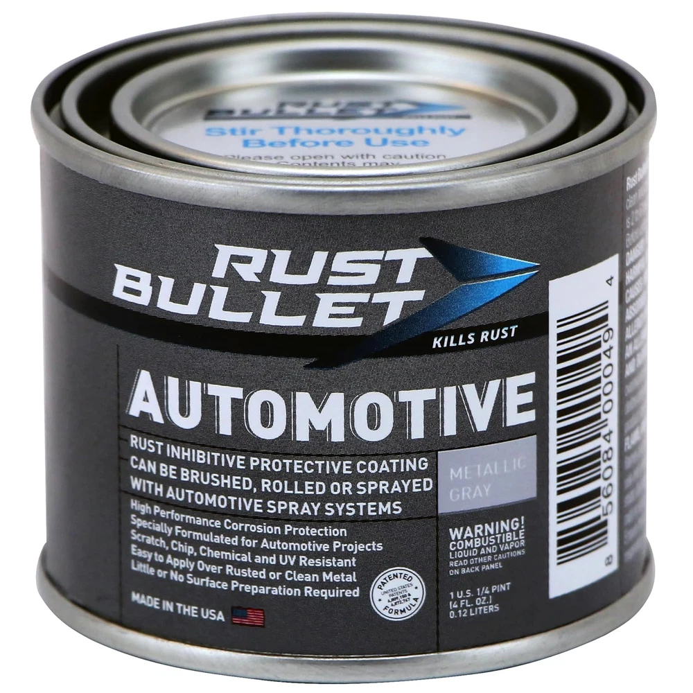 Business is our speciality NEW Automotive - Metallic Gray - 4 Oz - Rust Inhibitor & Protective Coating for Cars, Trucks, & Metal Surfaces, UV Resistant, No Topcoat Needed FEATURES Superior Rust Protection: Permanently stops rust and prevents corrosion on automotive metal surfaces, ensuring long-term durability Direct-to-Metal Formula: No primer required—applies directly to rusted or clean metal for an easy, efficient application Tough, Automotive-Grade Finish: Creates a rock-hard protective barrier that resists chips, scratches, and extreme weather conditions UV & Chemical Resistant: Won’t crack, peel, or fade under harsh sun exposure, road debris, oil, or fuel spills Easy Application: Can be brushed, rolled, or sprayed for a smooth, professional-quality finish RUST BULLET Automotive - Rust Preventive Protective Coating, Rust Inhibitor Paint, UV Resistant - No Topcoat Needed (4 oz Can, Metallic Gray) Item model number 856084000494 Unit Count 4.0 Fluid Ounces Item Volume 4 Fluid Ounces Color Metalic Grey Finish Type Metallic Product Dimensions 0.79 x 0.79 x 0.99 inches; 6.08 ounces Country of Origin USA Surface Recommendation Metal Is Discontinued By Manufacturer No Special Feature UV Resistant Specific Uses For Product Automotive rust inhibitor paint Paint Type Spray Size 4 Fl Oz (Pack of 1) 0.79 inches x 0.79 inches x 0.99 inches. Weight: 6.08 oz Ask us anyhting Free shipping PAYMENT We accept all payments via Ebay using Credit Cards , PAYPAL , Apple Pay and many others SHIPPING We are always working hard to ensure your package arrives as soon as possible. Please understand that some factors like weather, high postal traffic, and the performance of shipping companies are outside of our control. DELIVERY & RETURN POLICY We offer a 30-Day Return Policy on items in which you are not completely satisfied with. You have the option of a full-refund or an exchange of the item. No returns are available on items shipped outside of the USA.