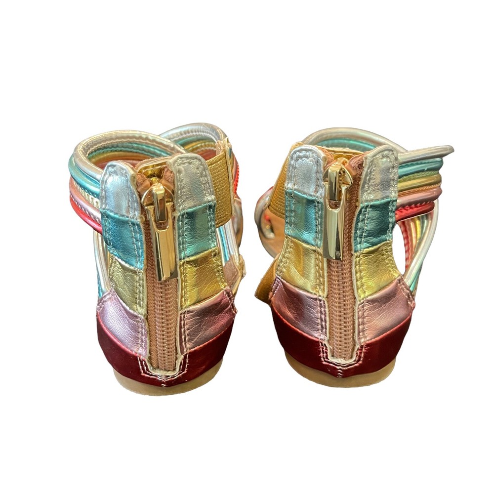 HomeMetallic Rainbow Ankle Strap Sandals with Gold Zipper for Girls Size 1