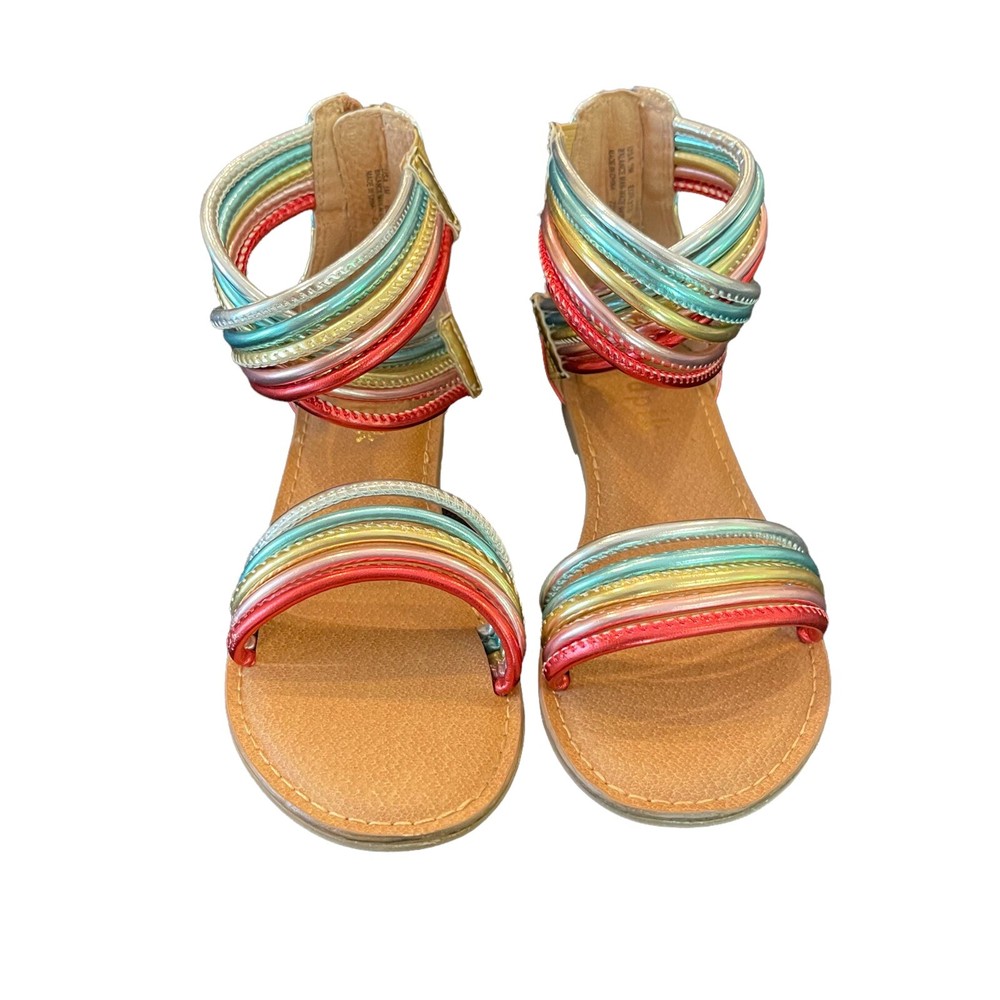 Metallic Rainbow Ankle Strap Sandals with Gold Zipper for Girls Size 1