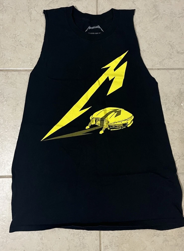 Metallica 2023 Concert Band Short Sleeve Black Yellow Tee Size L Large Tank Top