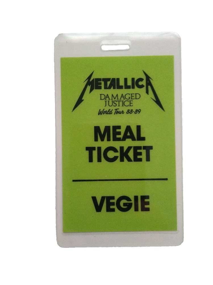 Metallica Backstage Concert Meal Ticket Pass Original Hard Rock Heavy Metal 1989