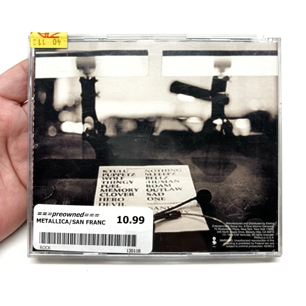 Genre: Metal, Rock, Hard Rock Style: Hard Rock, Heavy Metal gtin13: 0075596246323 Release Year: 1999 Edition: Promo Occasion: Any All Occasions CD Grading: Very Good (VG) Era: 1990s Format: CD Release Title: S&M Color: Silver and Black Type: Album Case Condition: Fair (F) Inlay Condition: Good (G) Record Label: Elektra Records UPC: 0075596246323 Artist: Metallica Language: English Case Type: Jewel Case: Standard