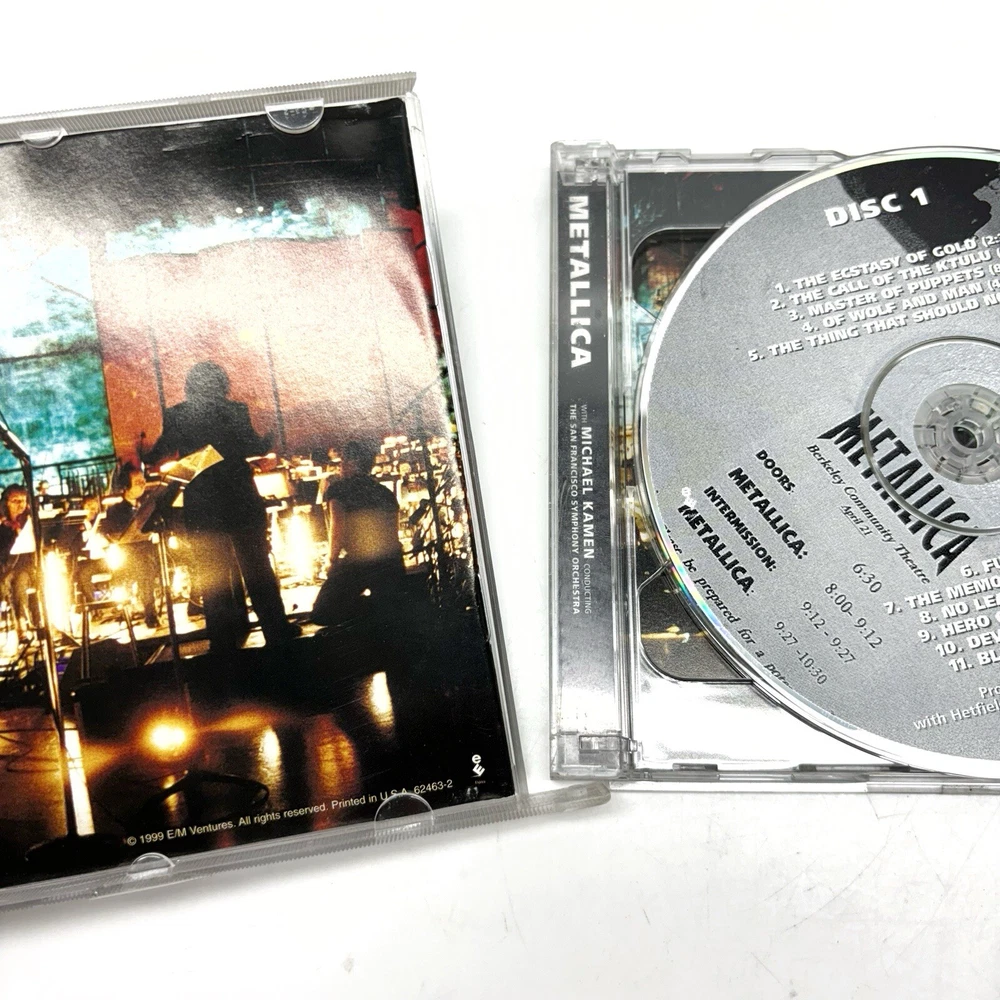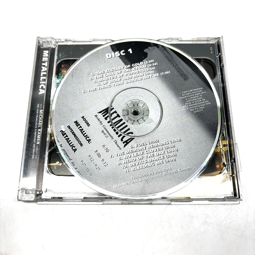 Metallica S & M 2 CD Discs 1999 Elektra Records Parental Adv Promotional Copy *Pre-owned. Case is broken/separated. Some scuffs, wear and tears visible on the case. Crack on the case. Discs are in good condition. Please see all photos and examine them carefully as they are part of the description. Photos provided is of the actual item you will be receiving. *Shipped with USPS Media Mail. Thanks for looking! Check out my store for more items!