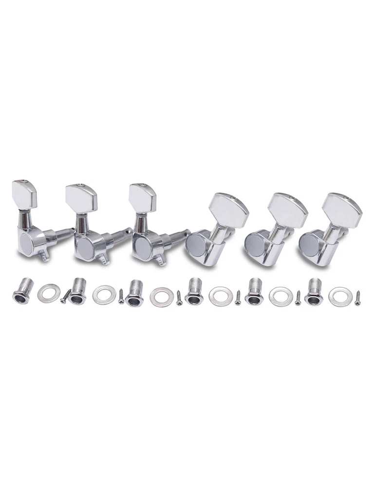Product description Color: Chrome Material: Zinc alloy Gear Ratio:1:14 Tunning peg hole Diameter: Φ6mm Ferrule hole diameter: Φ10mm Electric Guitar Die-cast Tuning Machines with 45° screw hole Please check the dimension carefully before place order. Package Include 1 x Set Tuning Pegs(3R3L) 6 x Ferrules 6 x Screws 6 x Washers Metallor Parts is a branch of Sunsmile Group, which has had over 20 years of experience in the musical instrument field. We are the leading company in China that can supply a full range of guitar parts, such as hardware, pickups and pickguards etc. Our precise production equipment and experienced staff assure you of the finest quality parts. Cooperating with guitar manufactures, our parts are widely used on famous guitars. Musicians, repairers, luthiers and factories deserve Metallor's quality parts and professional service.