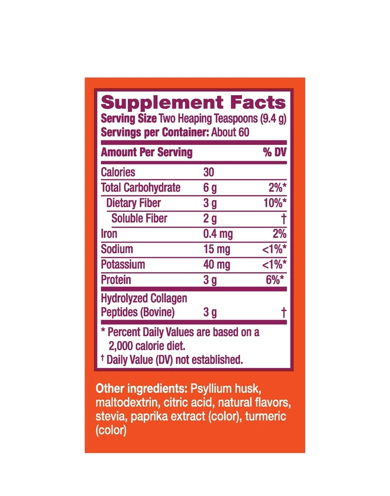 Metamucil Fiber + Collagen Peptides Powder Orange 19.9 oz/1.2lb. EXP 05/2026.