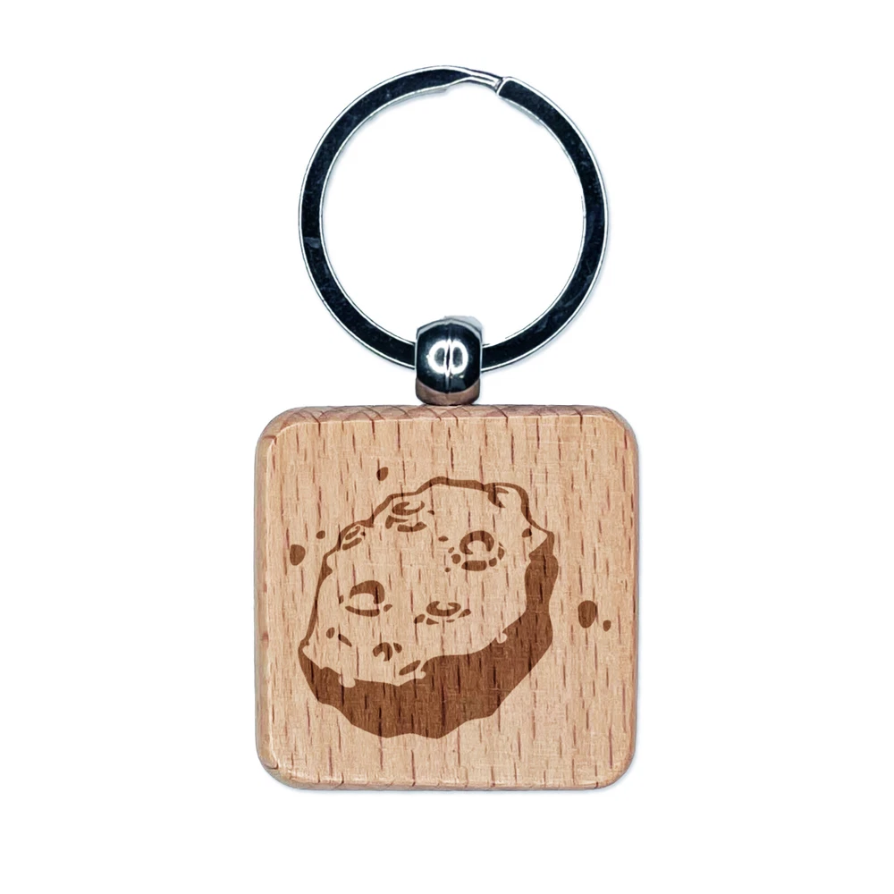 Meteorite Asteroid Space Rock Debris Engraved Wood Square Keychain Tag Charm