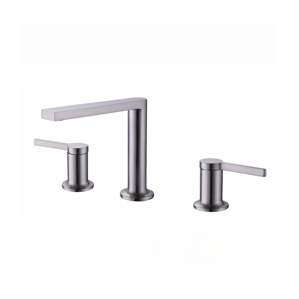 [additional] Included: Spout Valve (2 units) with handles Quick connection tube to connect the spout to the valves Hose for water supply 3/8 compression (2 units) Installation accessories Qty: 1 [/additional] Classic and elegant bathroom faucet with two valves.Design of roundand flat lines that makes it worthy of being inside our Soho family.This faucet includes classic curved edges for an attractive but substantial style that provides an elegant bathroom sensation. The characteristics of graceful style and without complications give this taps an eternal but fashionable presence. Adapted but relaxed. This brilliant collection works perfectly with current lifestyles.The handles make it easy to adjust the water Clear laminar flow provides a beautiful water presentation. Tap handles can be installed at any distance between 8 in. and 16 in. for more customized extended installation. Available in different finishes. Features: Widespread faucet 8 to 16 inch installation Hidden aerator Flat design levers and spout. Ceramic cartridge 3/4 inch Flow rate: 1.2 gpm @ 60 psi / 4.5 Lmin @ 414 kPa Deck thickness: Max 1 inch Hose included for valve and spout connection. 1/2 inch female NPT 12 inch length Available in different finishes. Material: Brass Finish/Color: Brushed Nickel Dimensions: W: 14.5" * H: 6.25" * D: 7.5" Weight: 5.3 lb. Rustproof: Yes Warranty (Years): 1 Material Warranty: Yes Finish Warranty: Yes UPC Certified: Yes Easy Installation: Yes