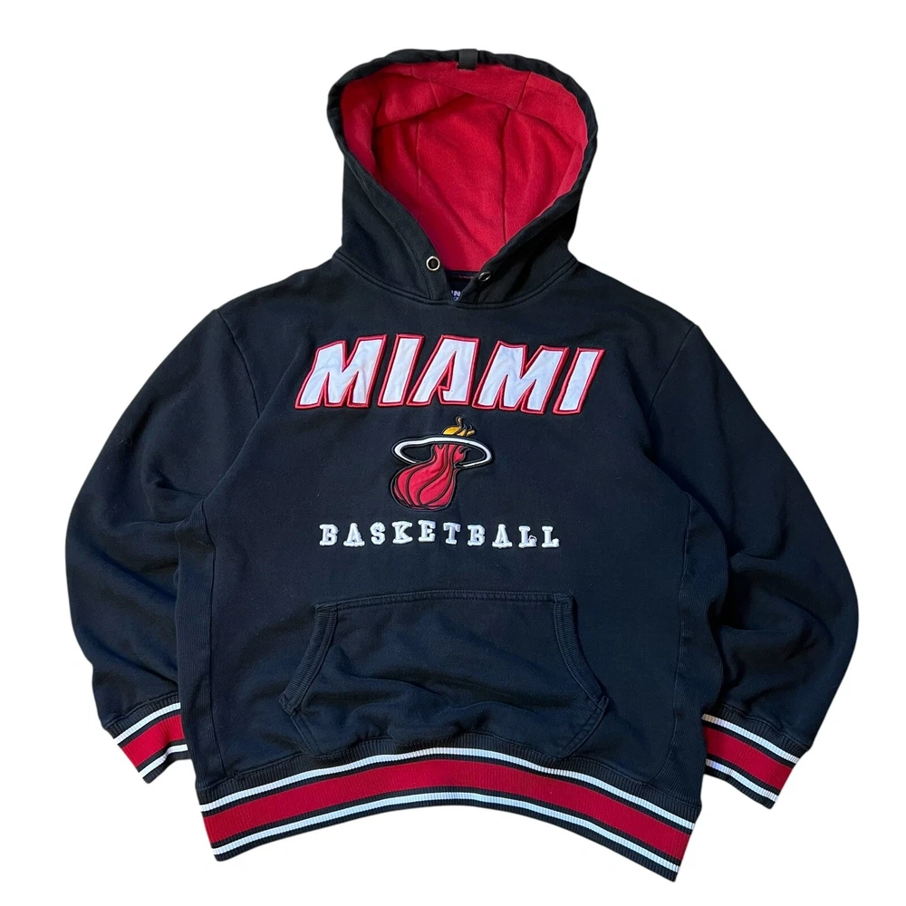 Miami Heat Hoodie Mens Large Black Red Pullover Sweatshirt NBA Embroidered Logo